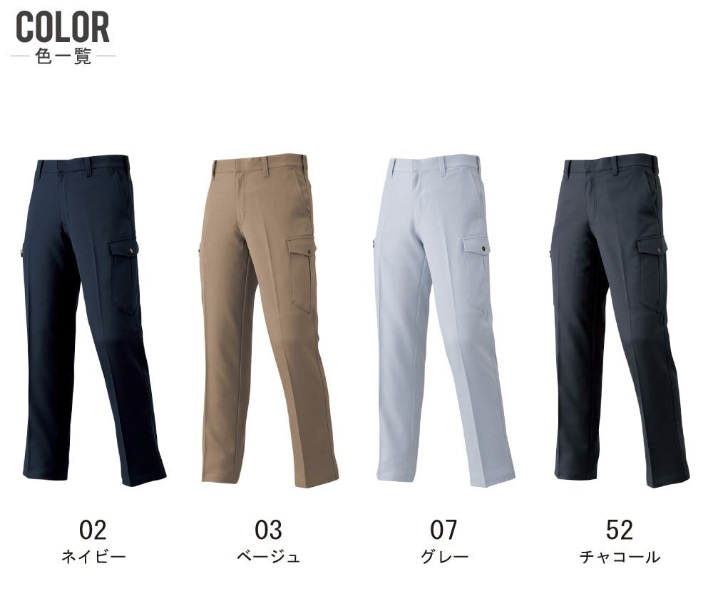 特長:制電/ストレッチ/ノータック/右ファスナー付カーゴポケット