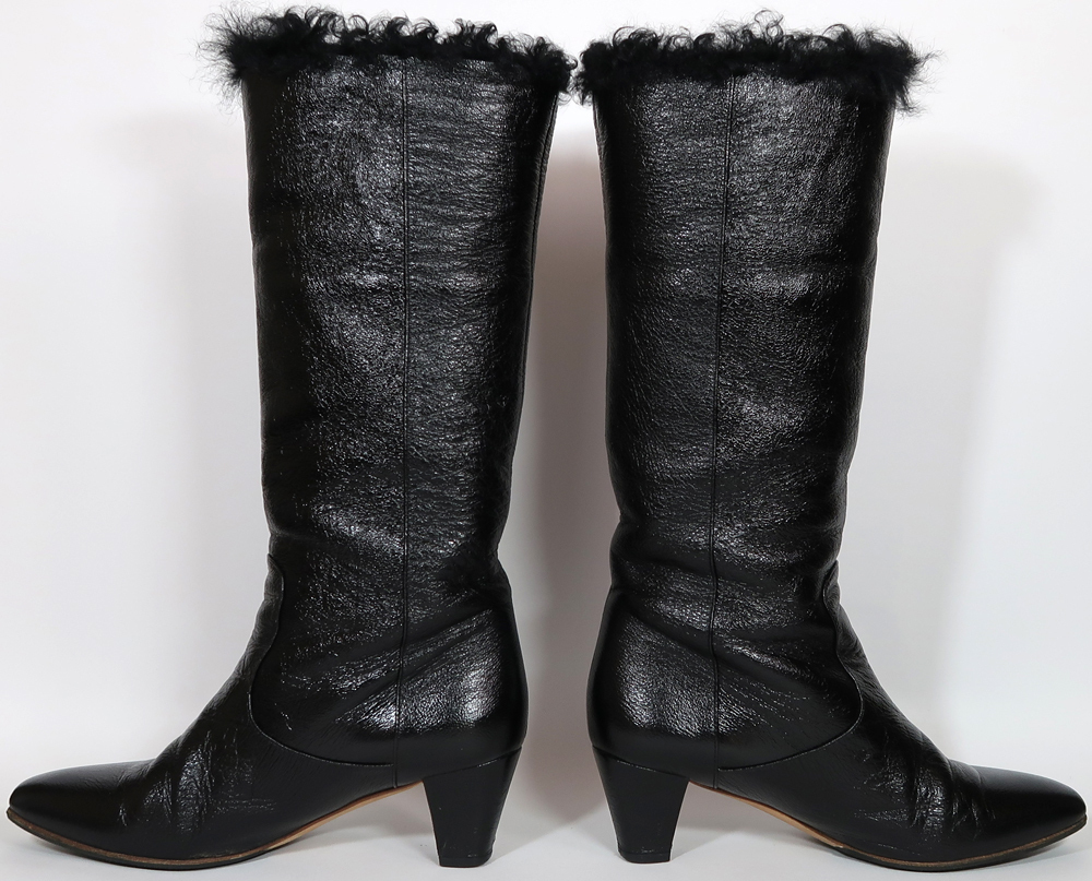出品は画像の靴のみです。使用品ですのでしわ、汚れや擦れはあります。右足ヒールやかかと付近に擦り傷あります。靴底前部は滑り止めのため購入後すぐにラバーが貼られています。靴が使用できないようなひどいダメージはないです。全長は36.5cm位です。上部筒周りは35cmくらいです。ヒール高は5cmくらいです