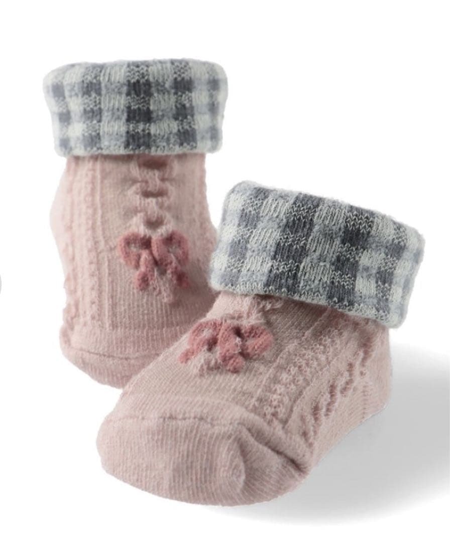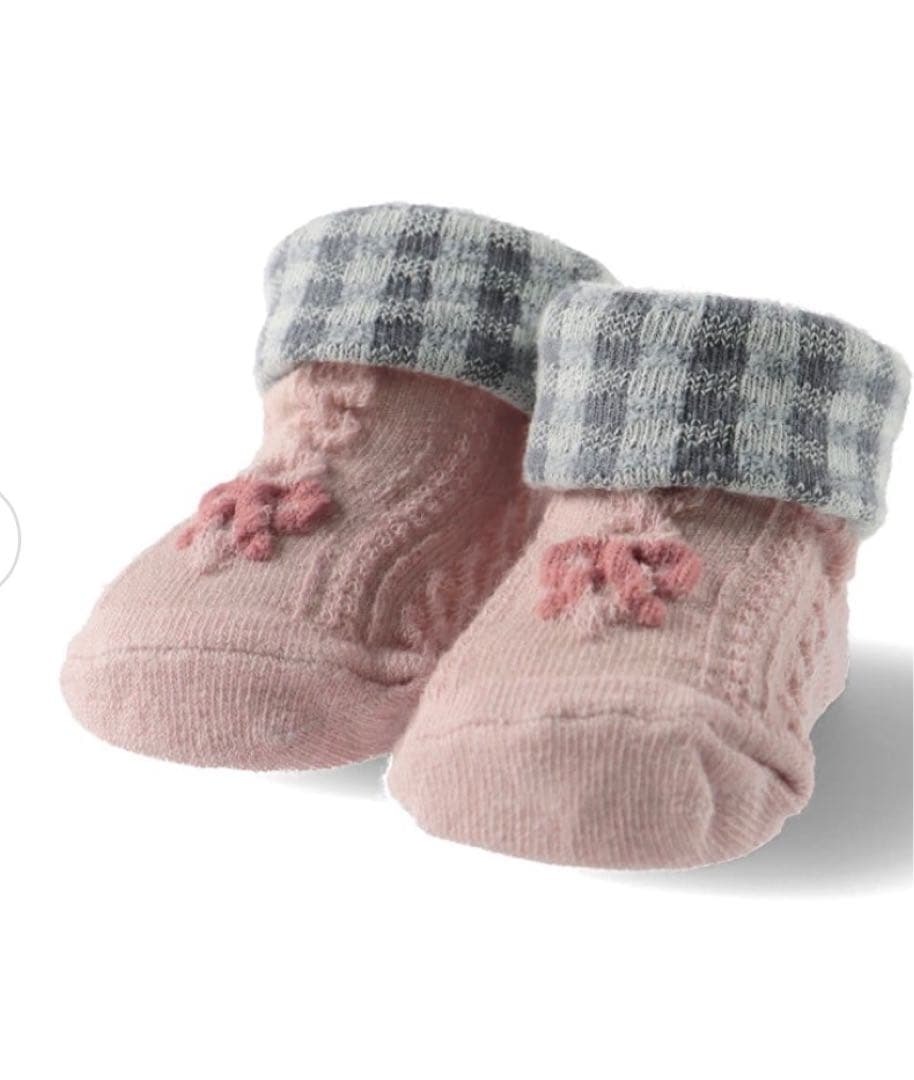 履き口のギンガムチェックと甲の部分のリボン柄がポイント!