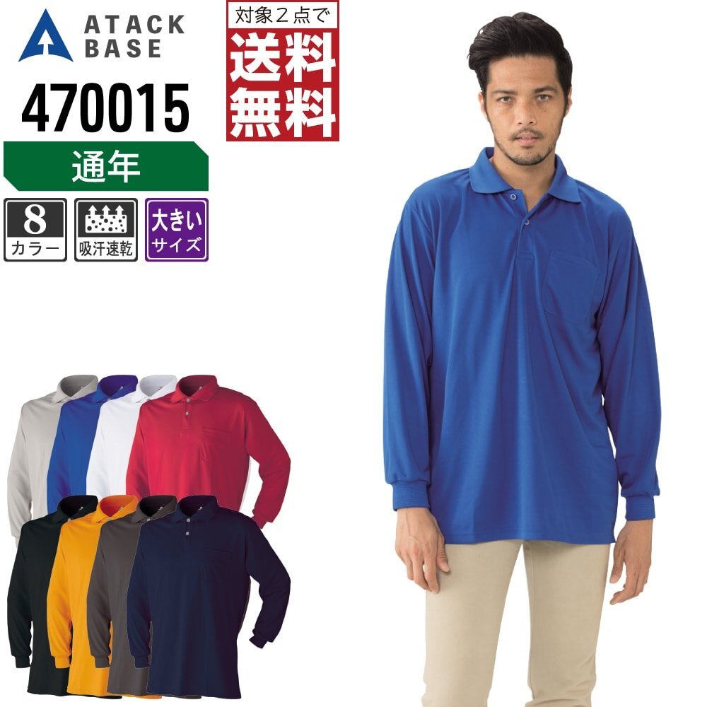 アタックベース 通年 吸汗速乾 長袖 ポロシャツ 470015 作業服 作業着 色:チャコール サイズ:3L ★ 対象2点 送料無料 ★