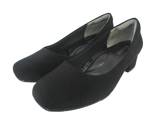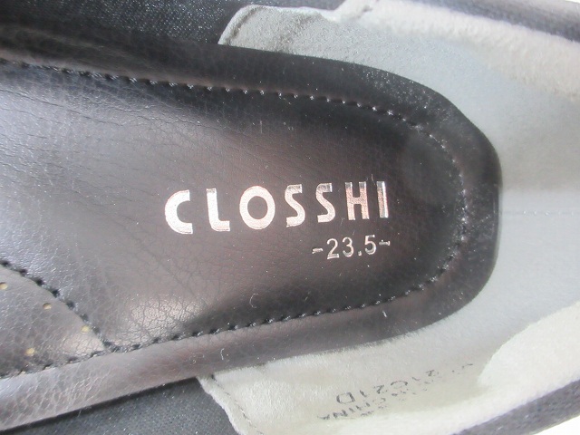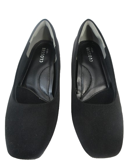 クロッシー CLOSSHI パンプス フラット チャンキー ヒール スクエアトゥ 無地 ブラック サイズ23.5cm QQQ レディース