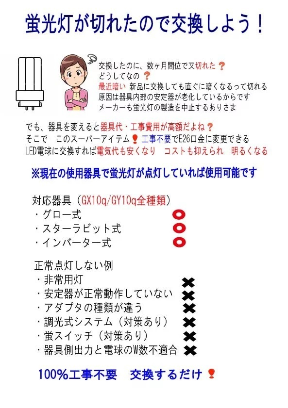 | 2025年最新型■100%工事不要■PSE適合■GX10q(完全対応)→E26変換ソケット 品番KS-GX10q-E26 適合 FPL4 FPL6 FPL9 FPL13 FDL9 FDL13 FDL18 FDL27 FHSD11 FHSD15 FHSD20 FUL6 FUL9 FUL13L FML9 FML13 FML18 FML27 FML36 FML55 |