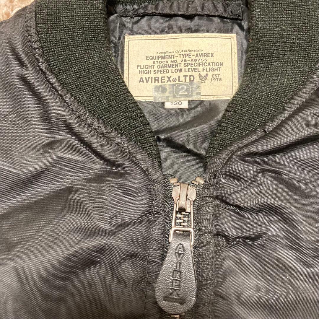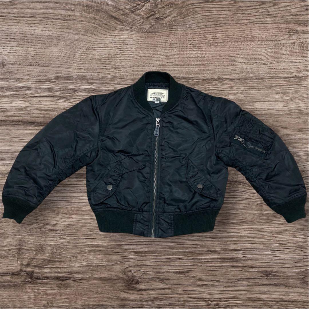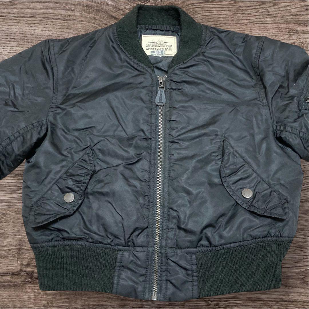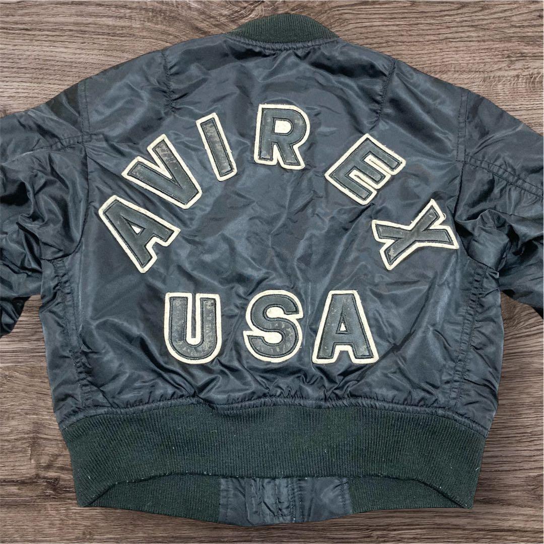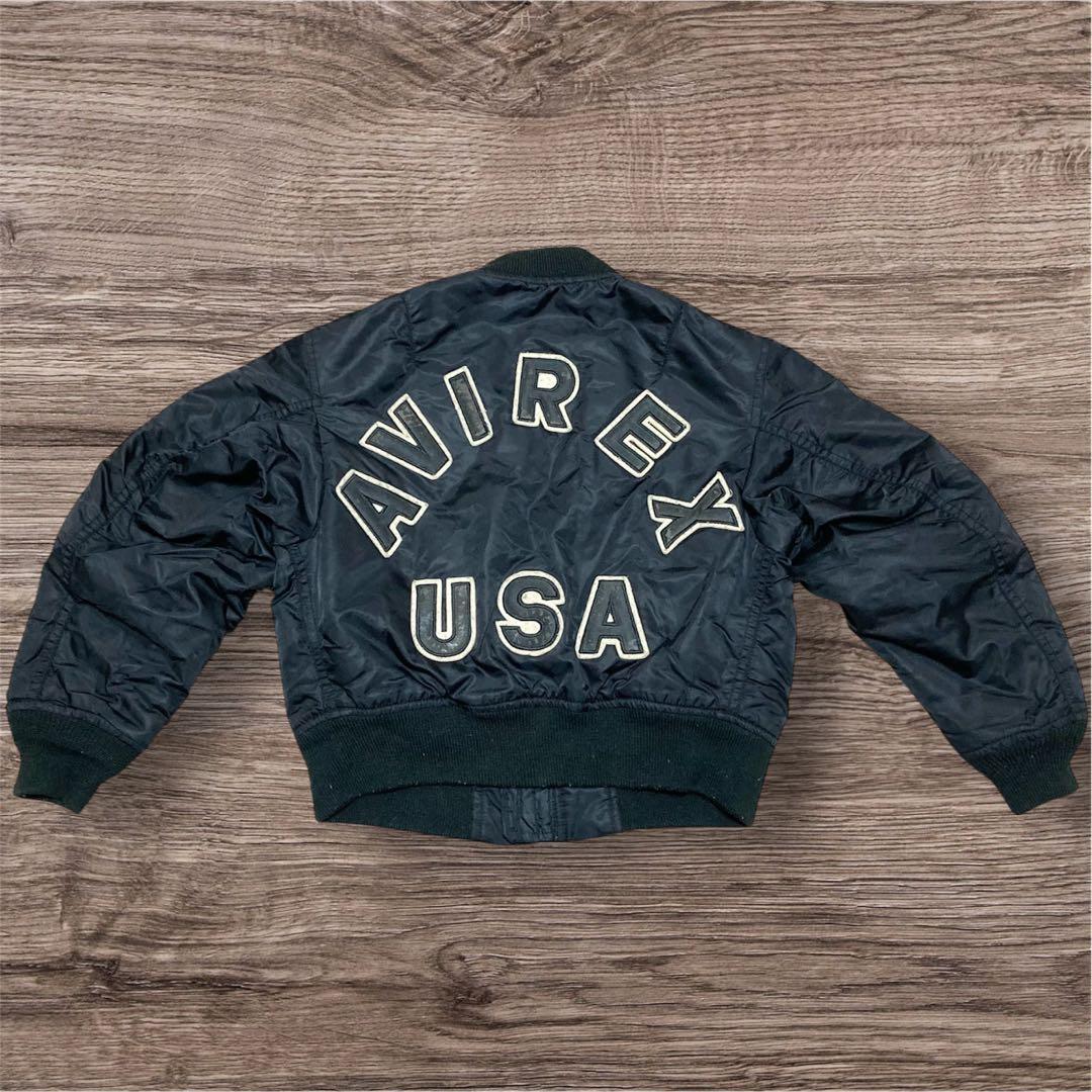 アビレックスのMA1ナイロンジャンパーです。背中には「AVIREX USA」の大きなロゴが入っており、存在感があります。キッズサイズで、お子様のおしゃれ着として活躍します。