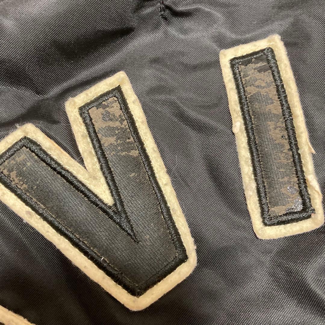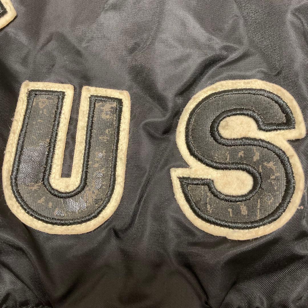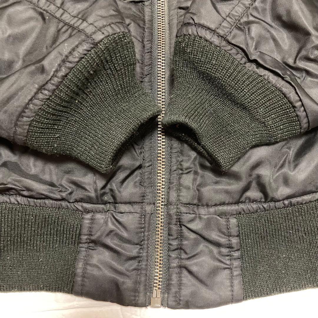 古着で首のタグに記名があるのでマスキングテープで隠して撮りました。塗り潰さずそのまま発送します。背中のロゴが削れているのでアップ画像を最後の方に載せました。ナイロンの所やジッパーの皮部分などは綺麗です。リブ部分に少しの毛玉の使用感があります。シミ、汚れ、ほつれ、穴、などはありません。
