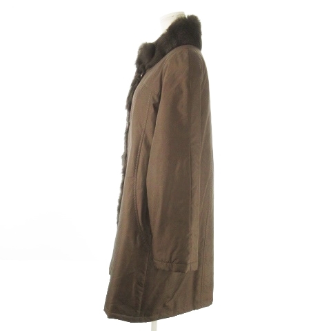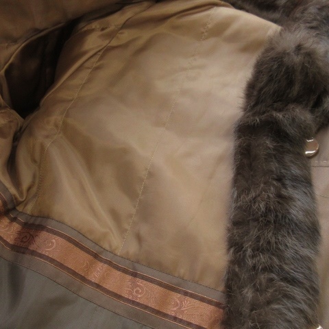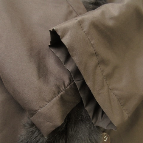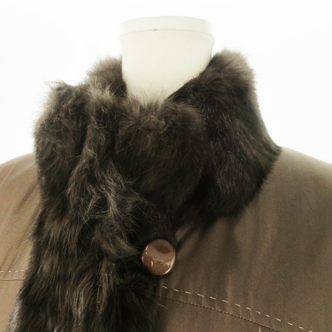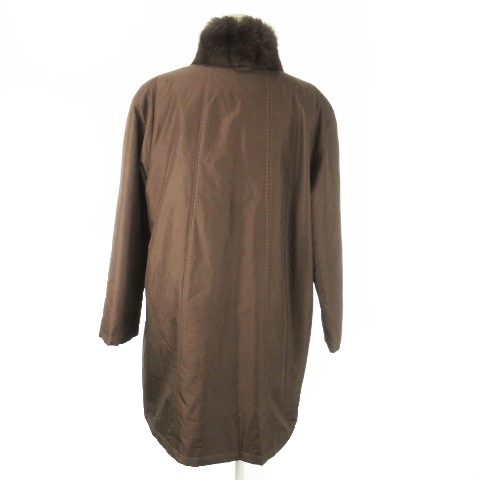ノーブランド ファーコート 中綿 ロング丈 スタンドカラー 絹 シルク ラビットファー 毛皮 ステッチ F 茶 ブラウン /AO14 ■GY99
