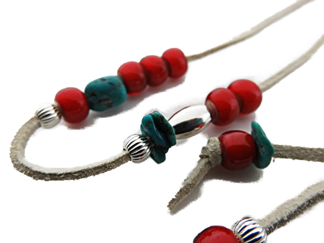 スエードの端をほどいて、お好きなビーズを足して自分好みにしてもOKです。