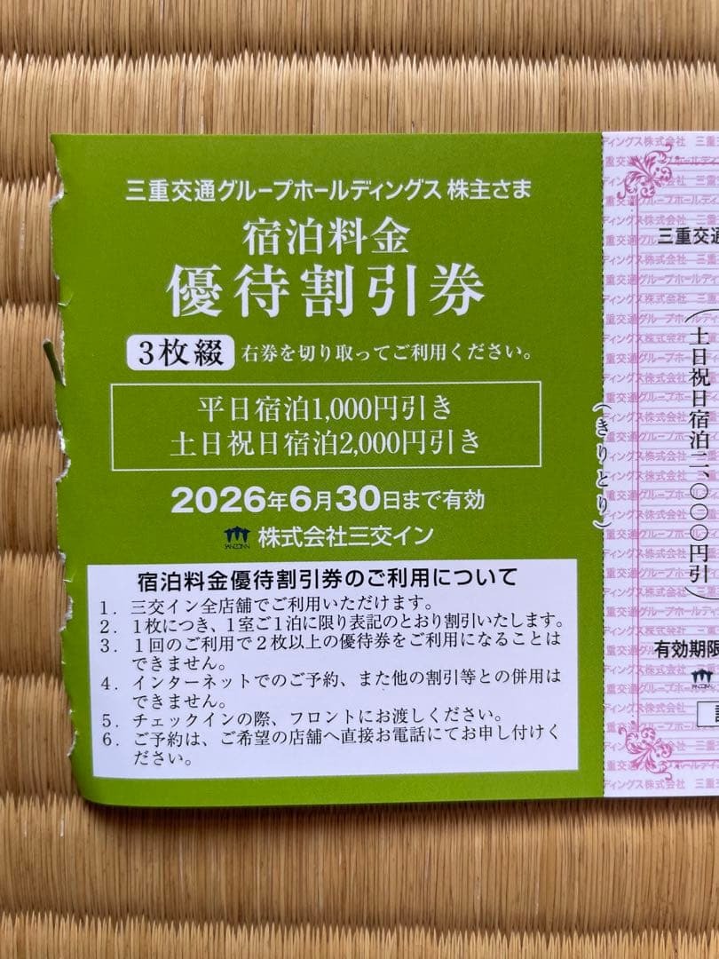 三交イ宿泊料金優待割引券3枚綴りでの価格です。