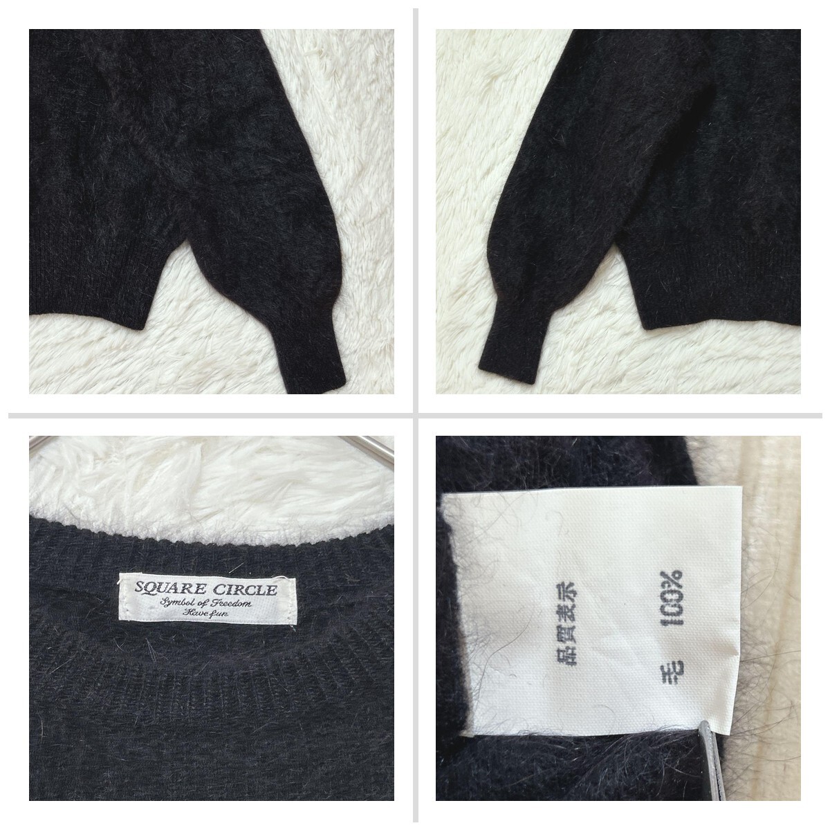 スクエアサークル ニット セーター シャギー 黒 F 長袖 日本製 DA53F4