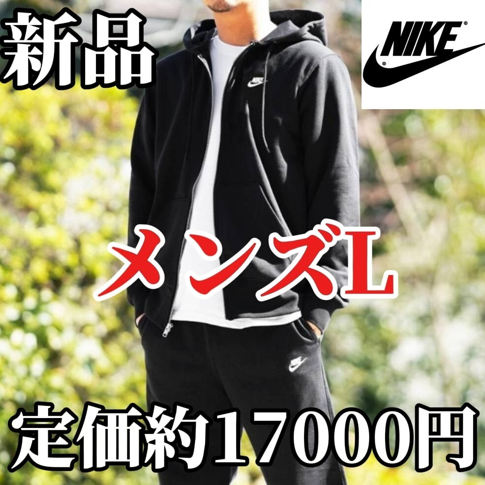 NIKEのメンズプルオーバーパーカーとスエットパンツセット、スウッシュロゴ付きの新品です。