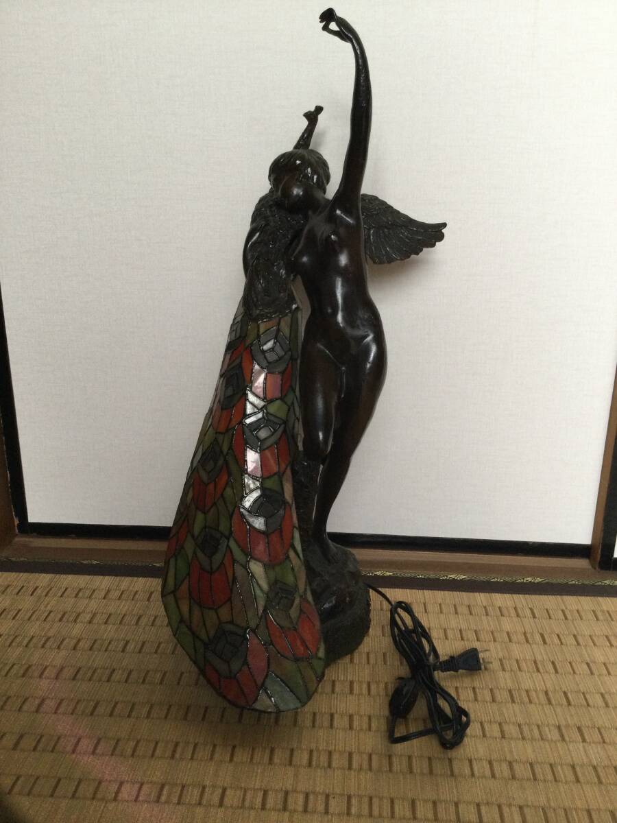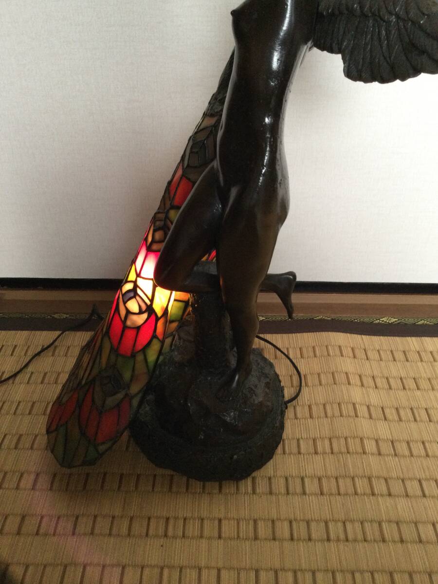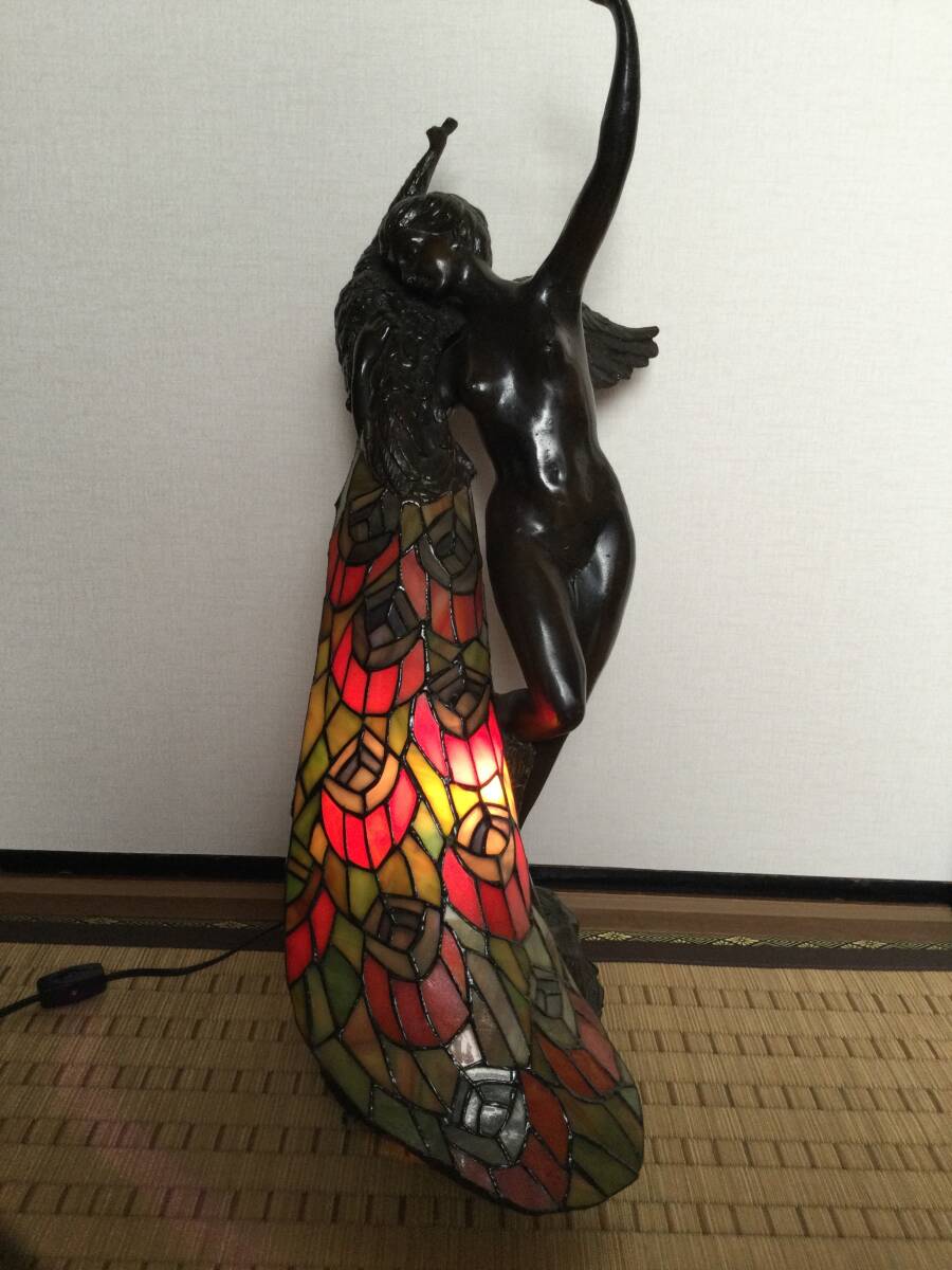 希少 女神プロンズ像 ステンドグラス 孔雀 卓上ランプ