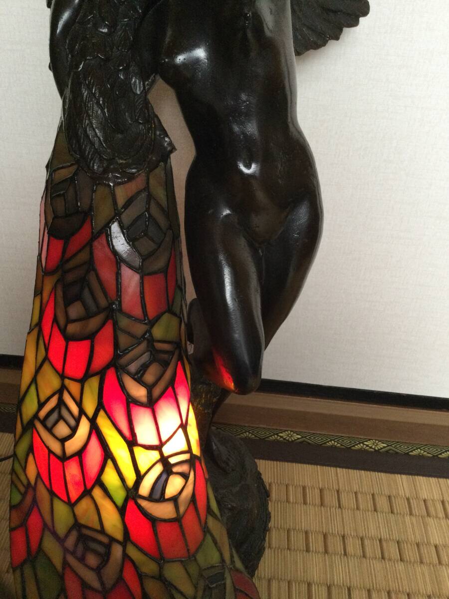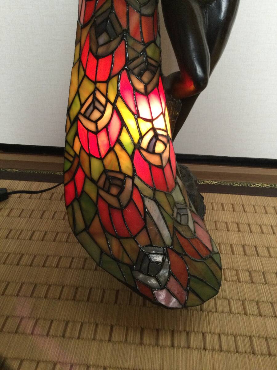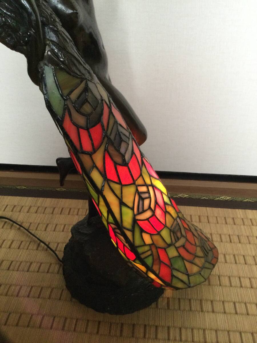 希少 女神プロンズ像 ステンドグラス 孔雀 卓上ランプ