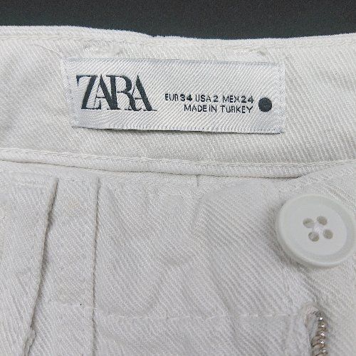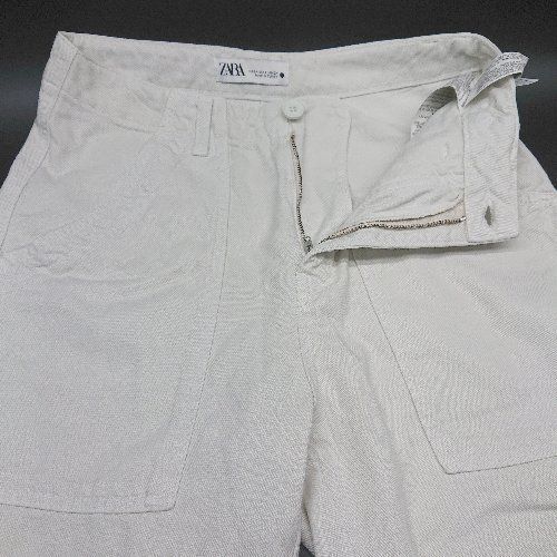 ◇ ZARA バイアス生地 ノンストレッチ 薄手 カジュアル ワークパンツ サイズ34 ライトグレー レディース E