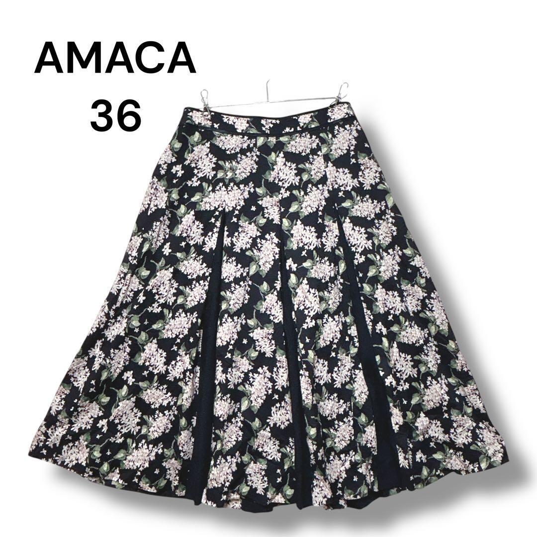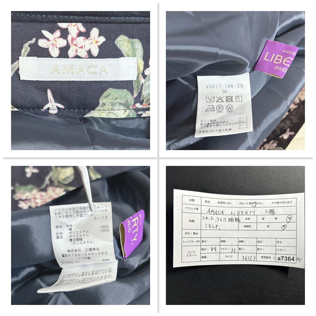 アマカ リバティー 三陽 スカート フレア 総柄 ミモレ丈 36 66EEDB