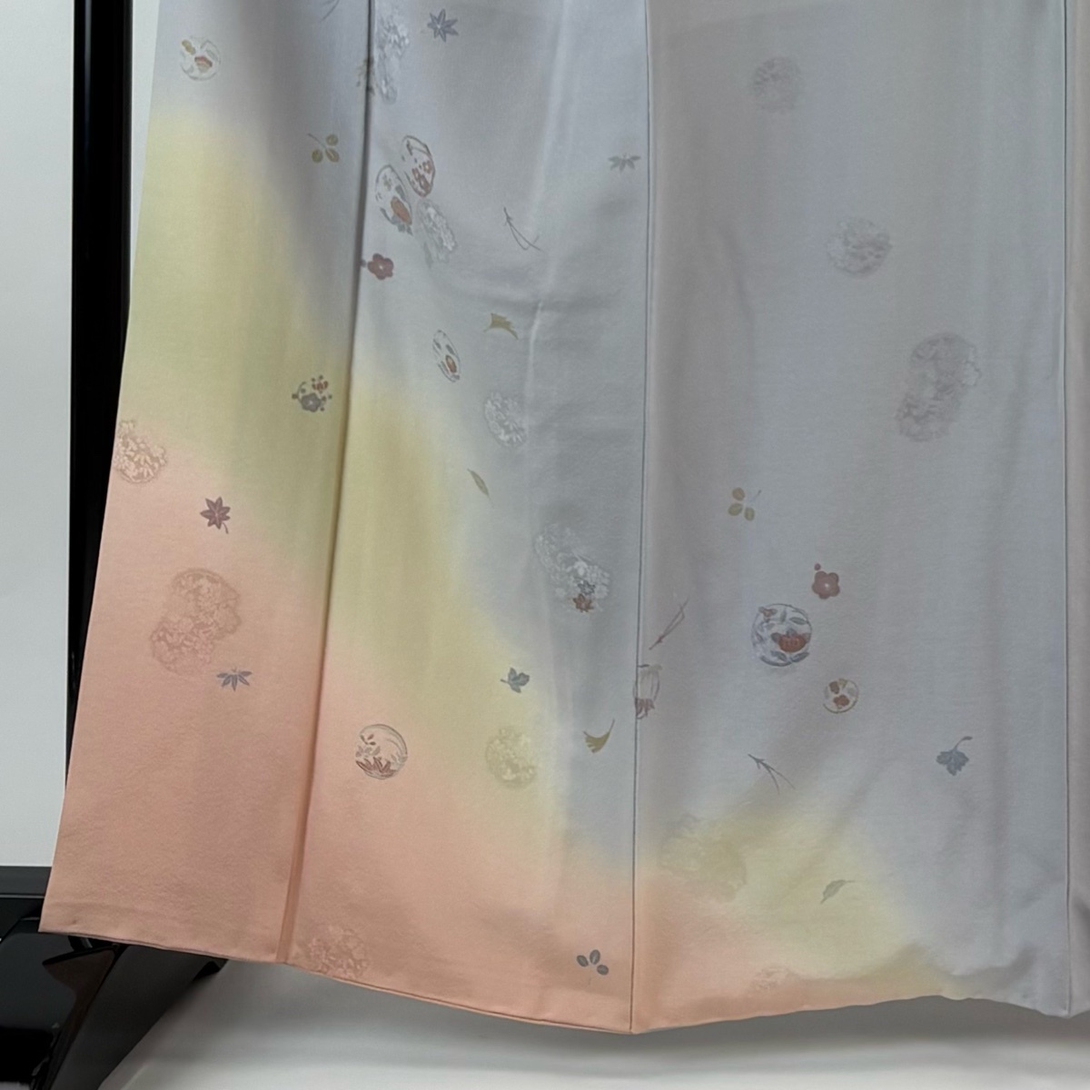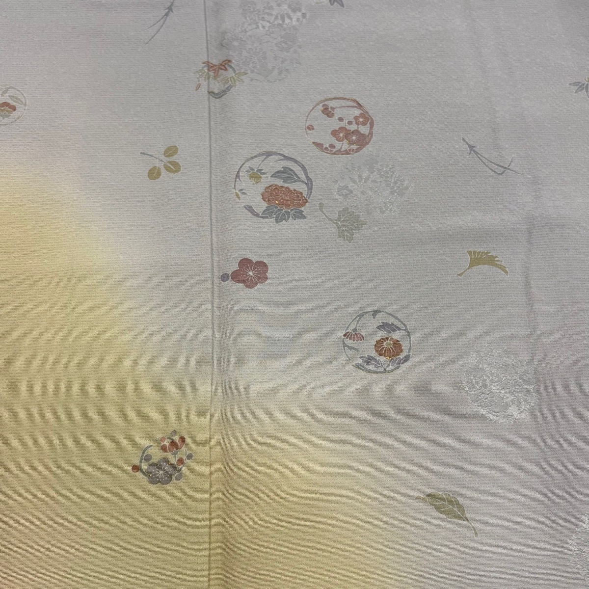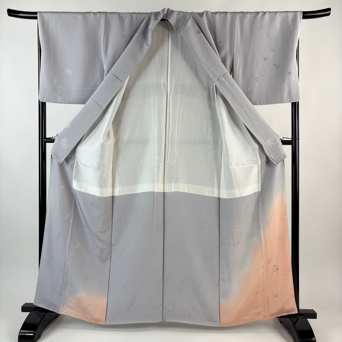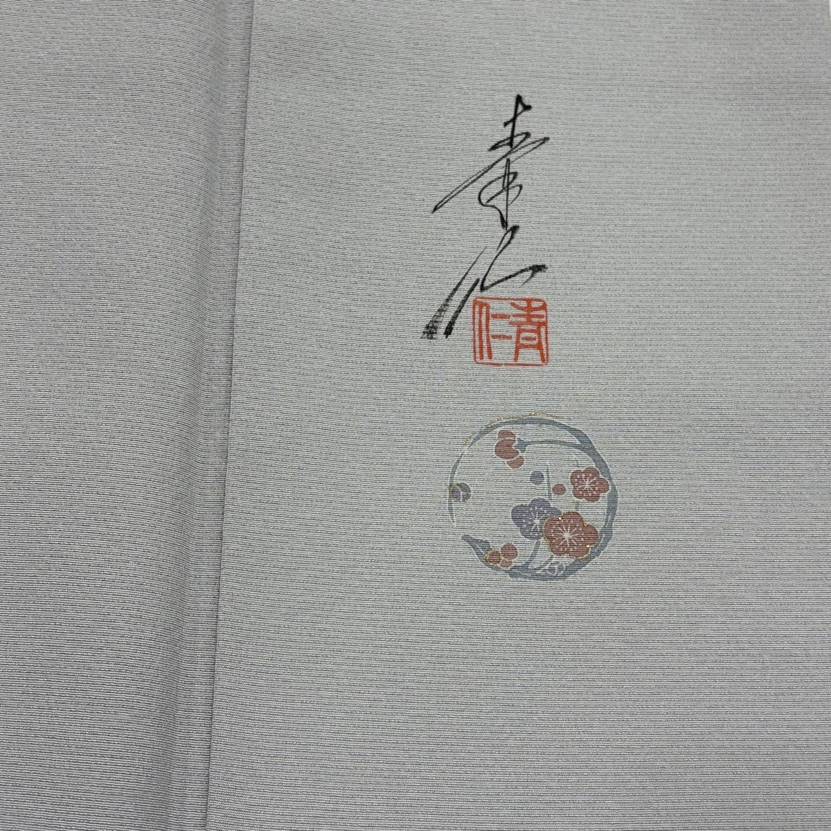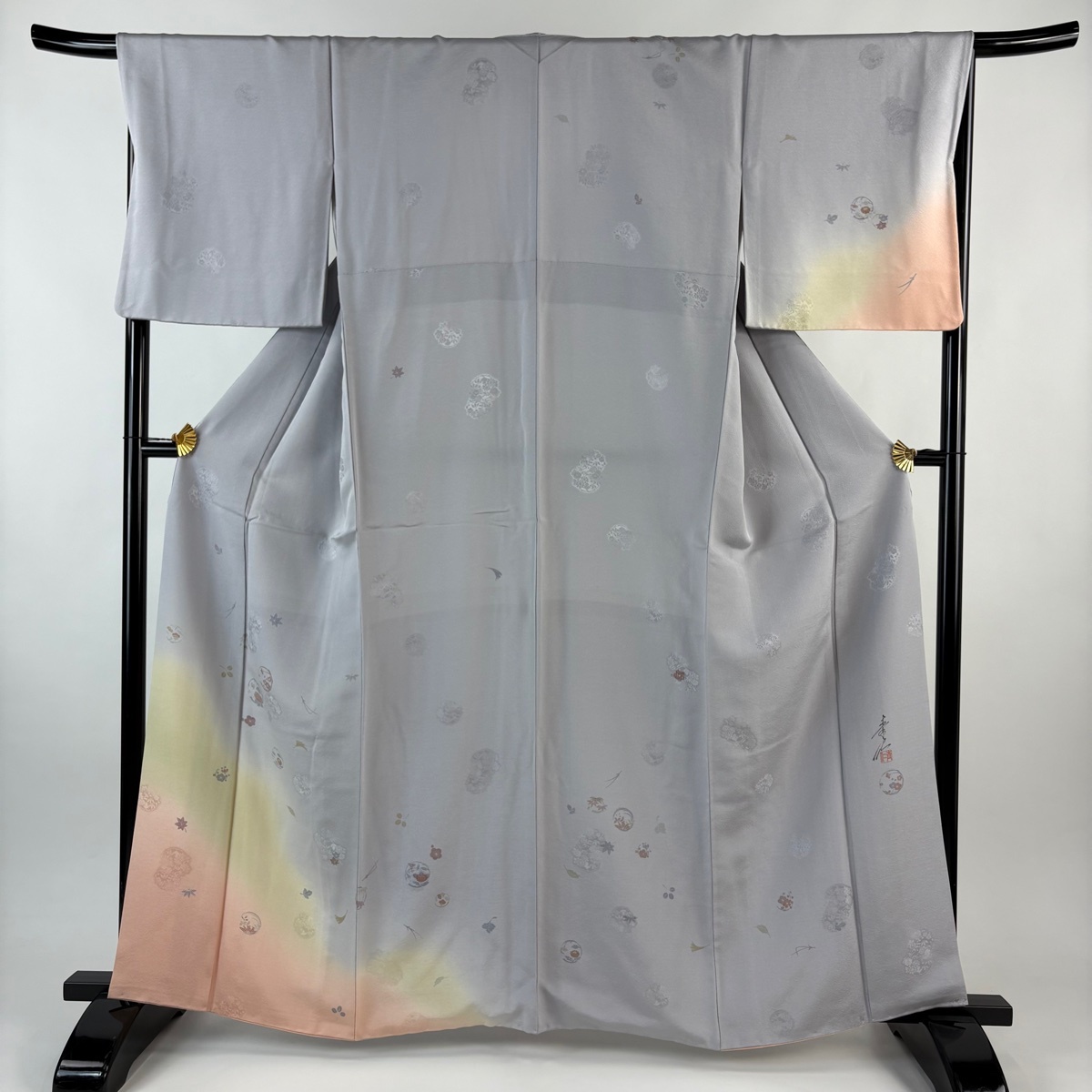 | 付下げ 秀品 落款 浅井青仁 花丸文 松竹梅 金彩 ぼかし 灰紫 袷 身丈162 裄丈66.5 M 正絹 【中古】 |
