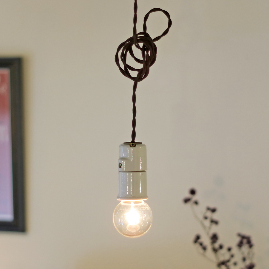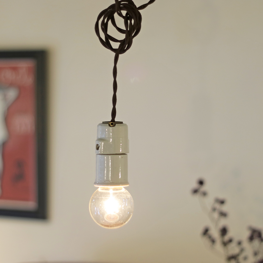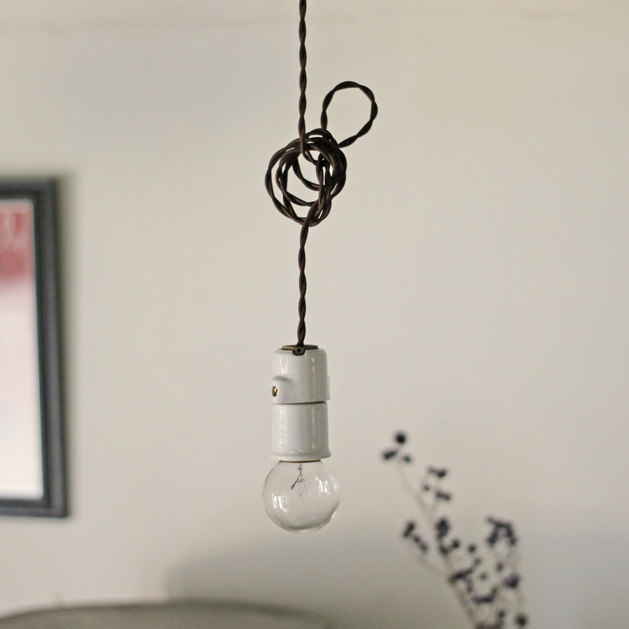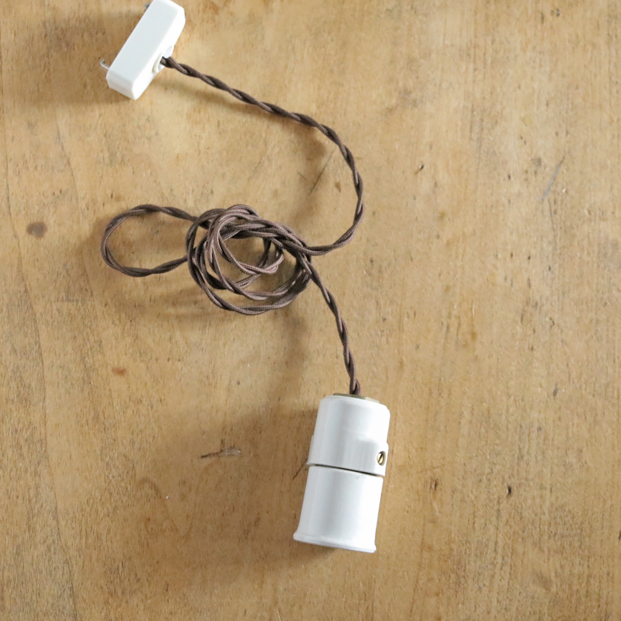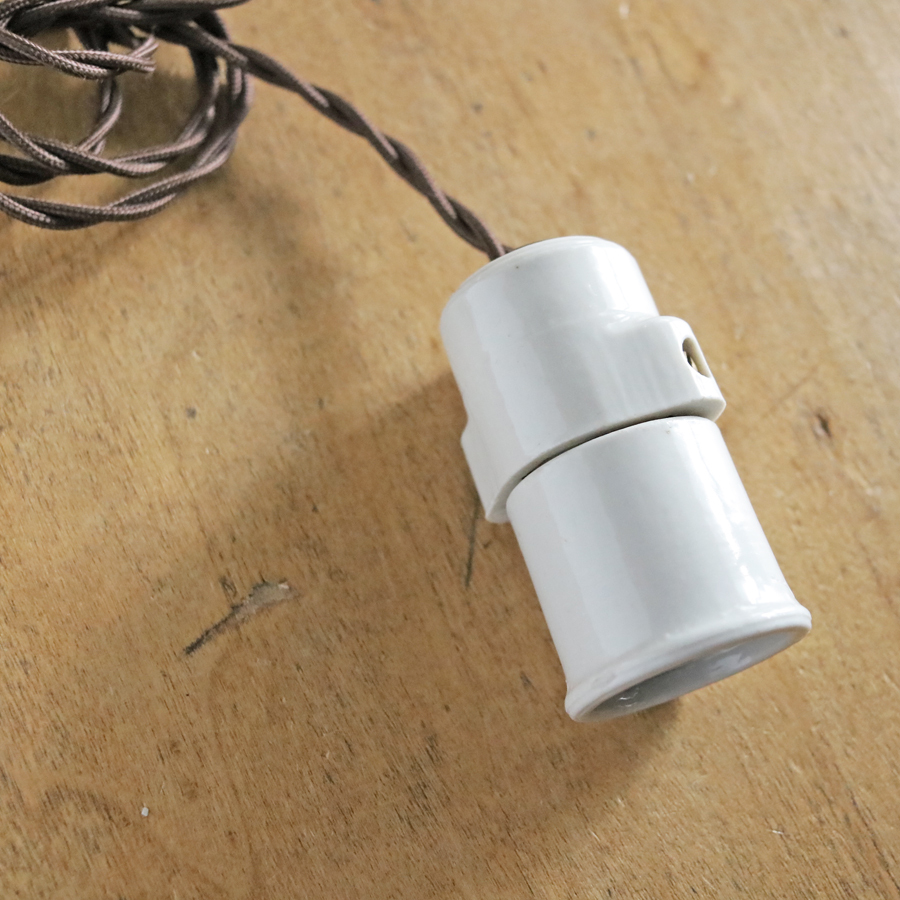 【たっぷり長めコードのフランス陶器ソケット】フランスアンティーク 陶器 ランプ D*/磁器 北欧 照明 カフェ アトリエ ねじりコード FT