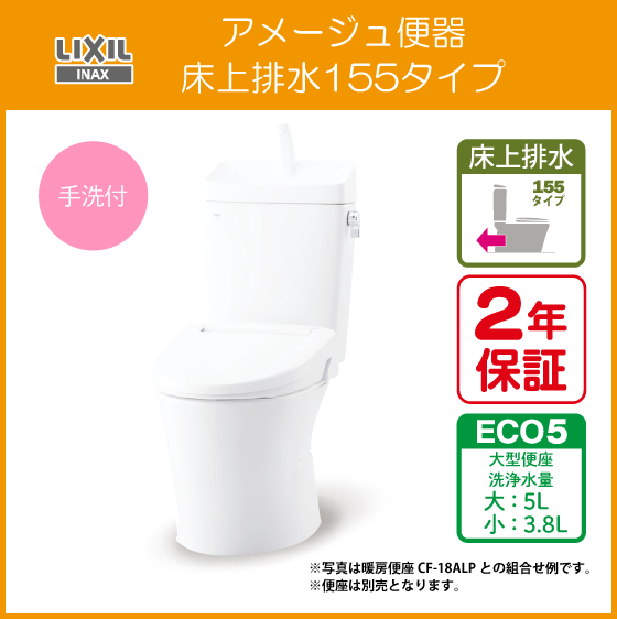 ★ LIXIL INAX アメージュ便器(手洗付) 床上排水 155タイプ アクアセラミック ★