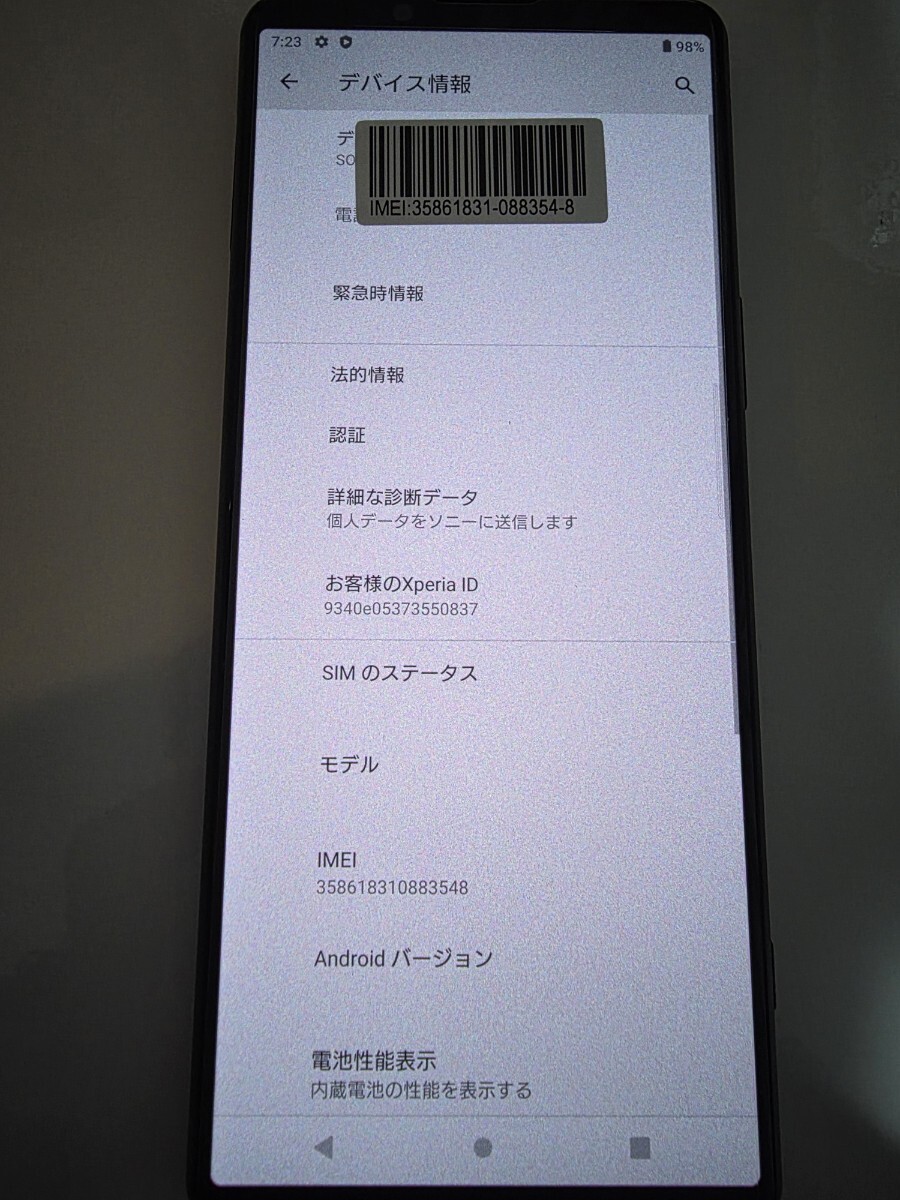 ※lMEIの判定は(-)判定でした。未使用、登録前と説明は出ていました。