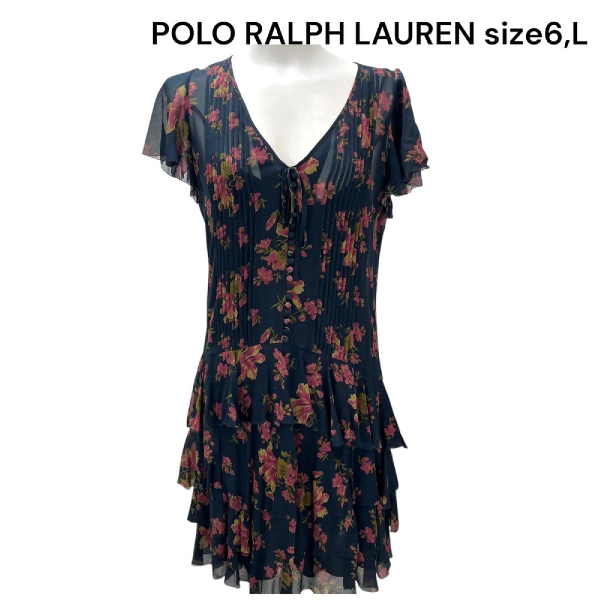 美品 ポロ ラルフローレン POLO RALPH LAUREN 花柄 ティアード ワンピース 6、L  レディース S5Q404