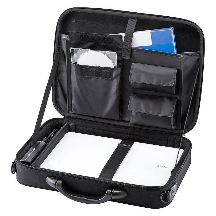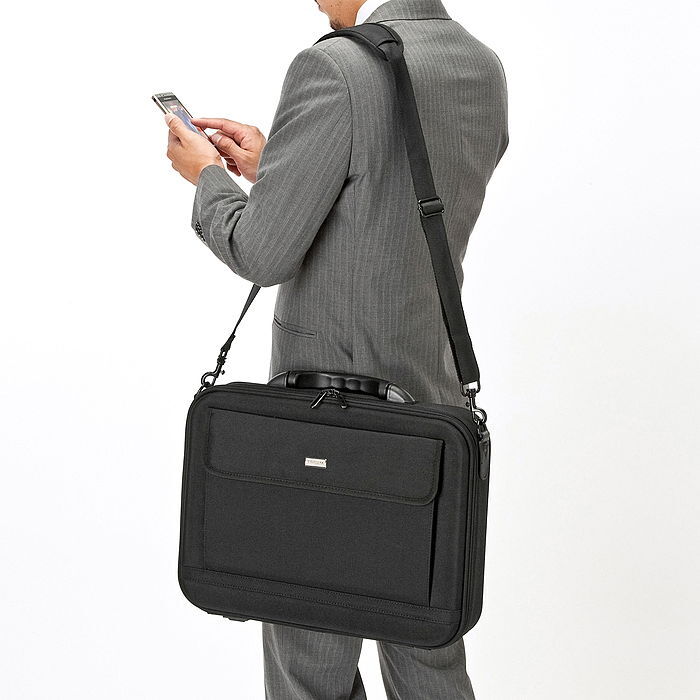 ※こちらの商品はメーカー直送です。沖縄・離島配送不可となります。 特長 衝撃吸収性のあるセミハードパソコンケースです。 衝突に対する復元性に優れた発泡材(EVA)を使用しています。 フロントポケットには、小物やA4書類などが収納できます。 ファスナー引き手は、鍵穴(直径約3.5mm)付きで鍵の取り付けが可能です。 ショルダーベルト付きです。 仕様 カラー ブラック サイズ 外寸/W450×D110×H335mm 参考収納寸法(パソコン収納部)/W410×D65×H290mm 重量 1560g 材質 EVA、ポリエステル張り(撥水加工) 対応機種 15.6インチワイドまでのノートパソコン 気をつけておりますが、タイミングによっては在庫切れの場合があります。 |