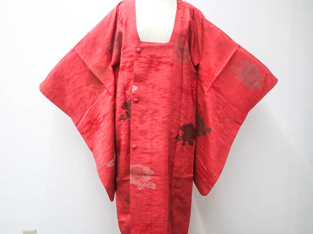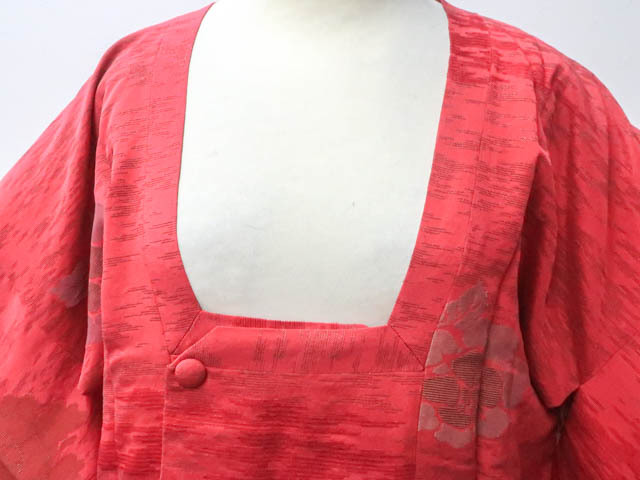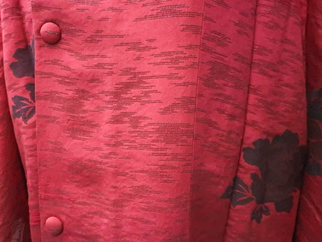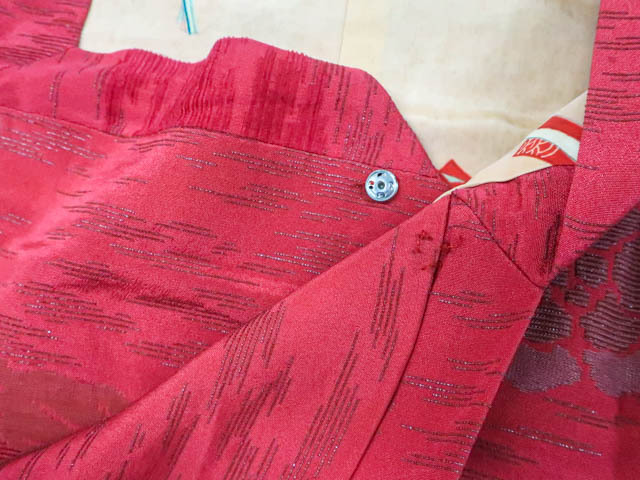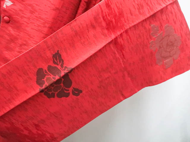リサイクル商品のため、衿のSBボタンがとれています。左前袖、裏地にしみ汚れがございますが着用可能なお品です。 地色は 濃ピンクです。 1枚目の画像が近いお色かと思われます。 素材は正絹です。 |