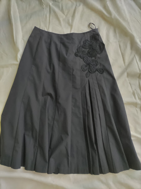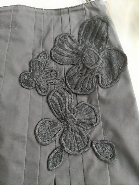 ウエストにお花がついてます。大きなひだスカートなので、きちんと感があります。