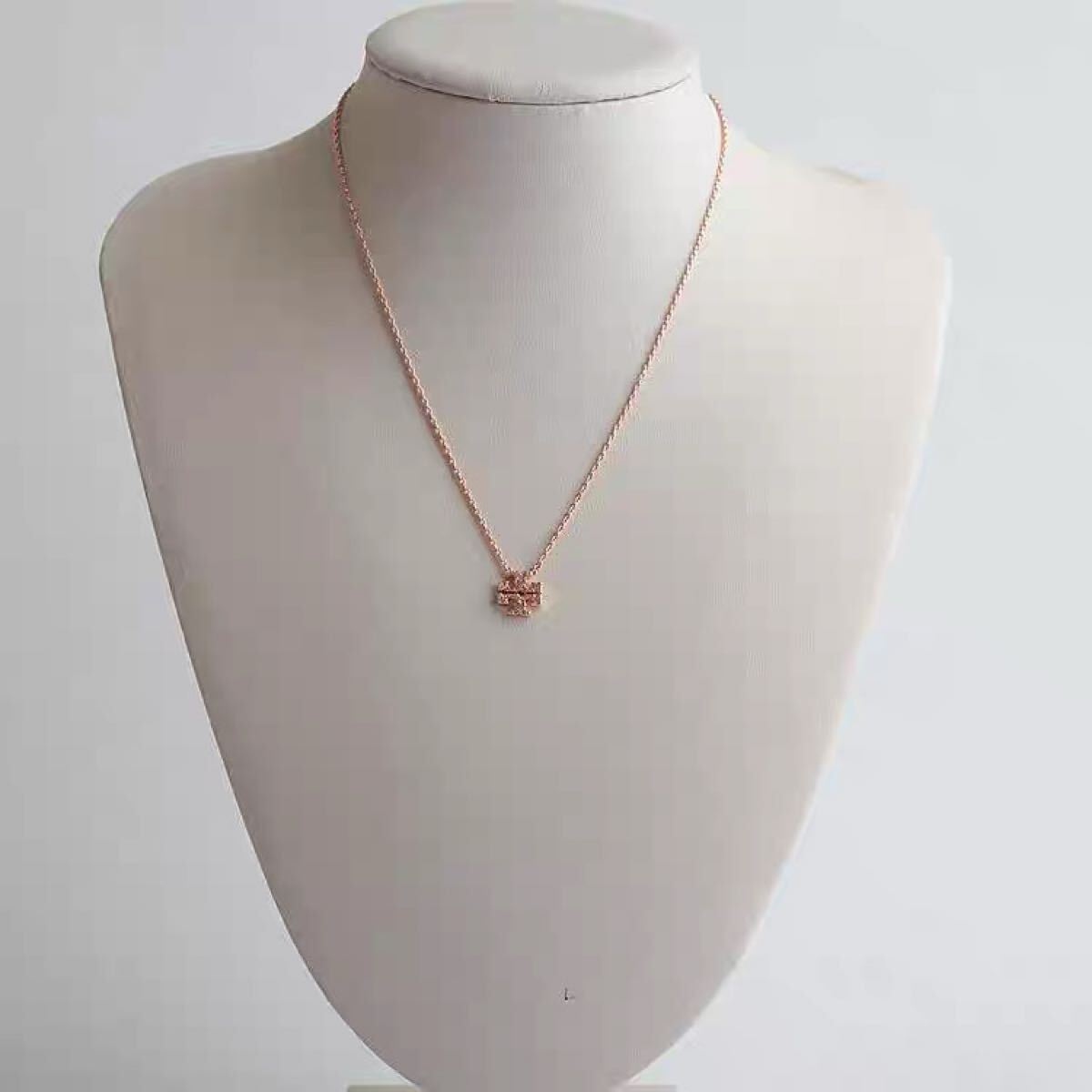 上品なゴールドピンクカラーに、ブランドロゴのチャームがきらめくデザイン。