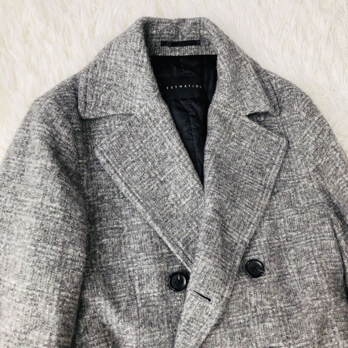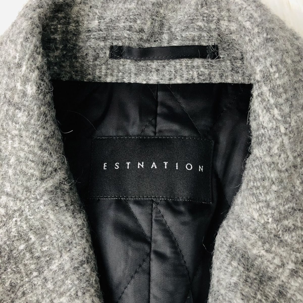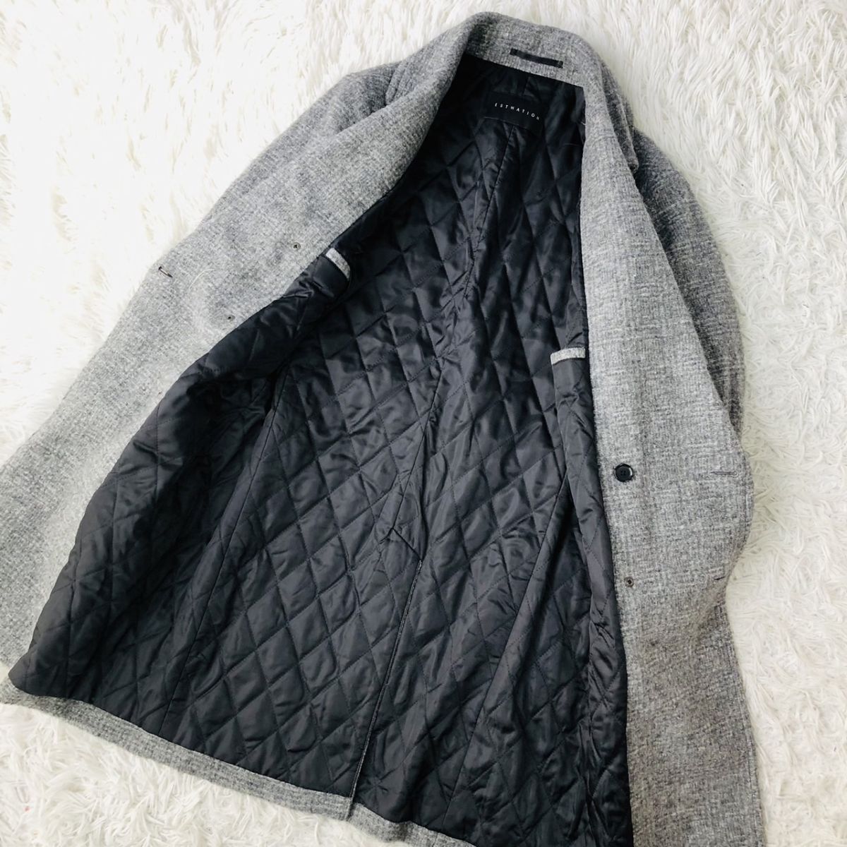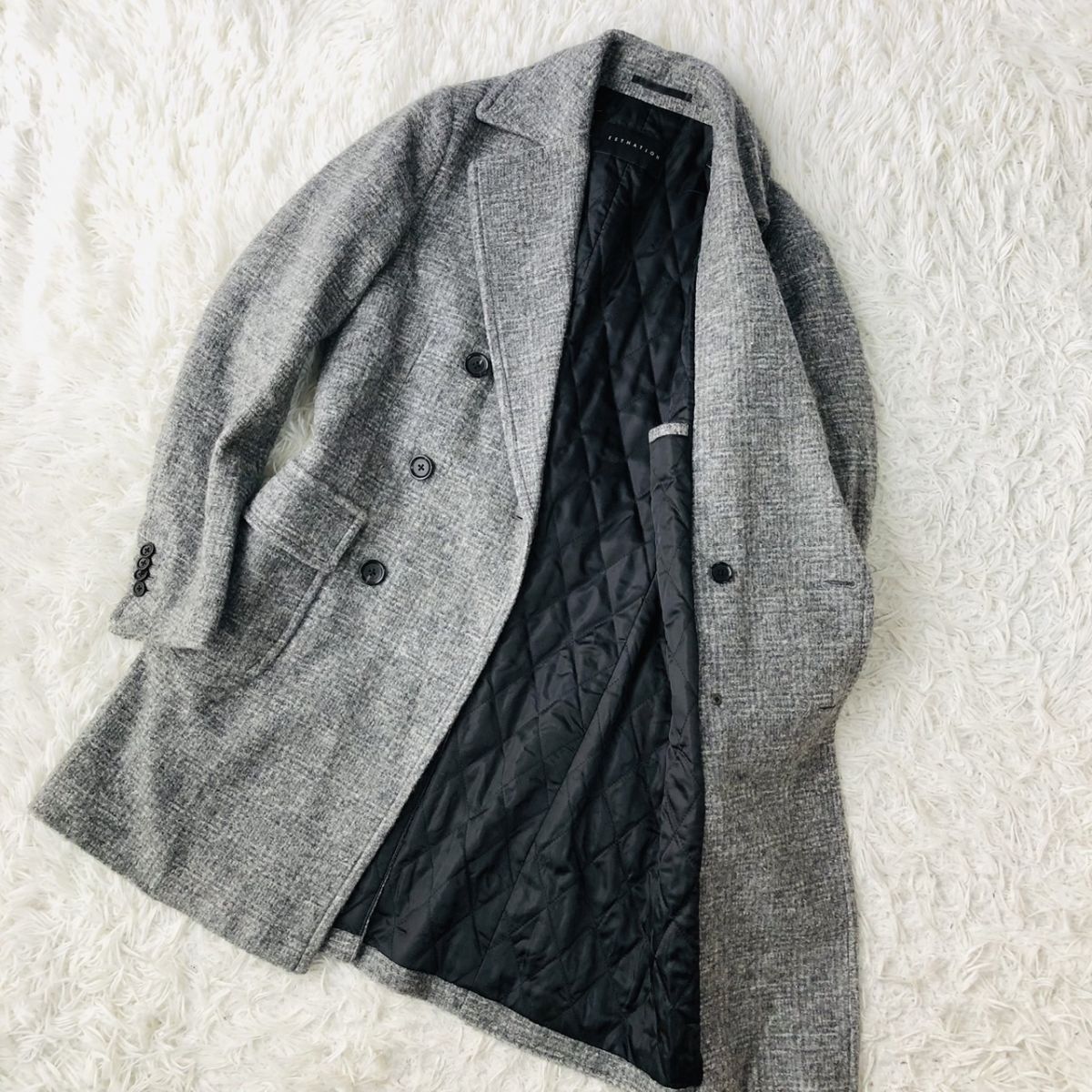 【美品/高級素材】ESTNATION エストネーション チェスターコート ダブルブレスト チェック柄 モヘヤ混 グレー Sサイズ キルティング 03