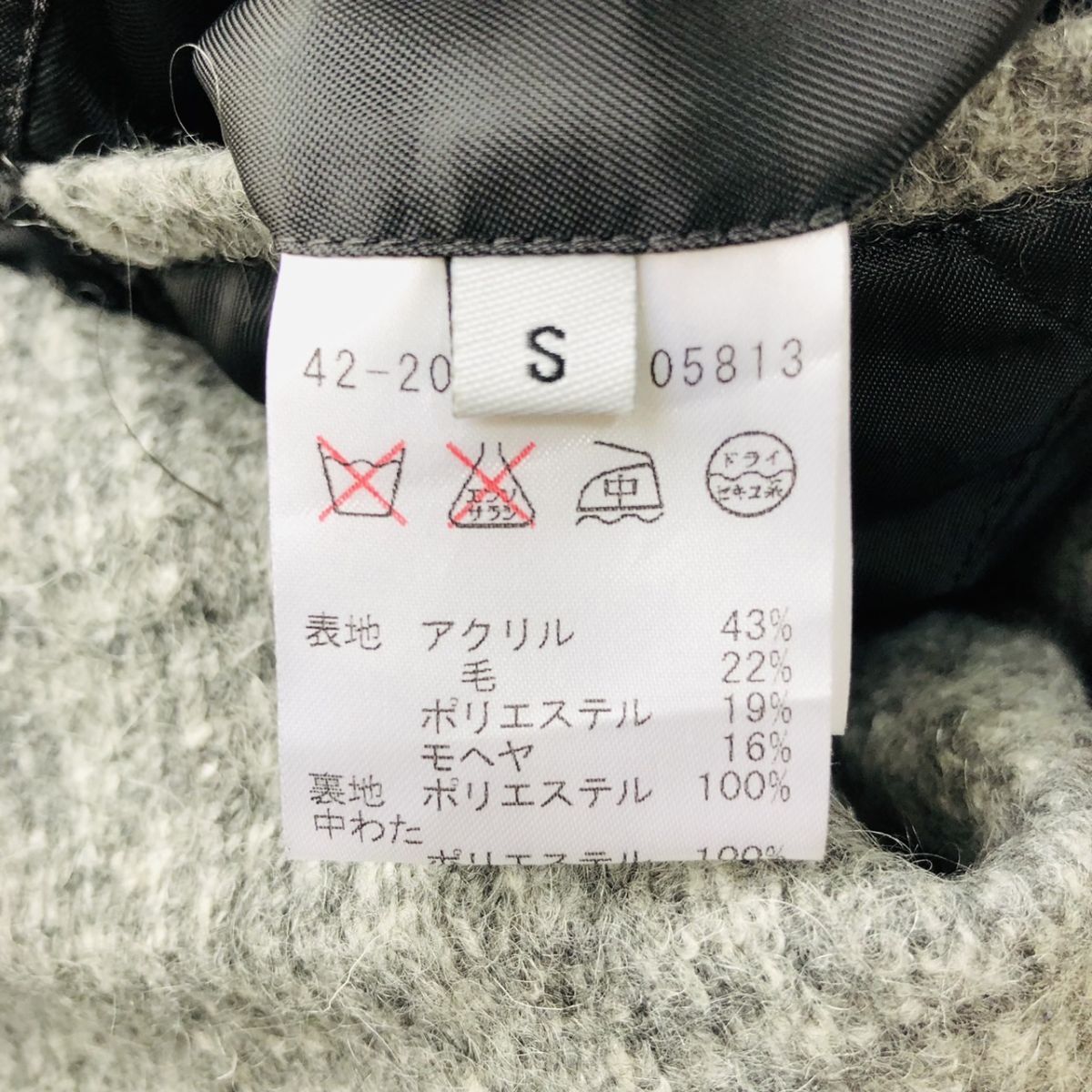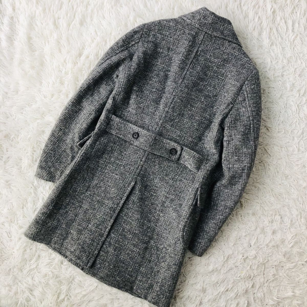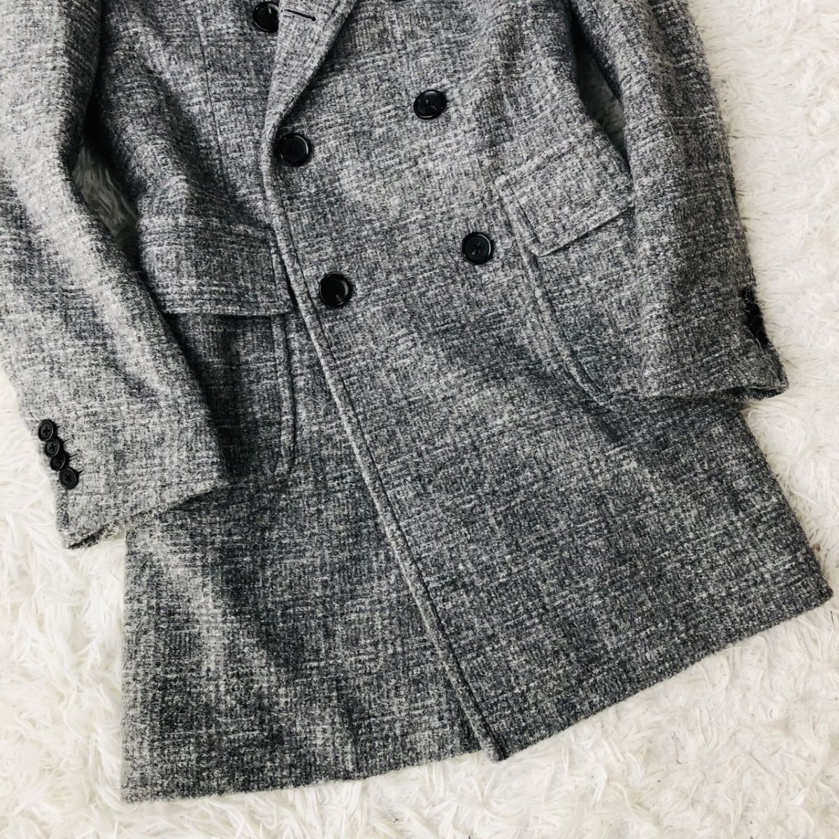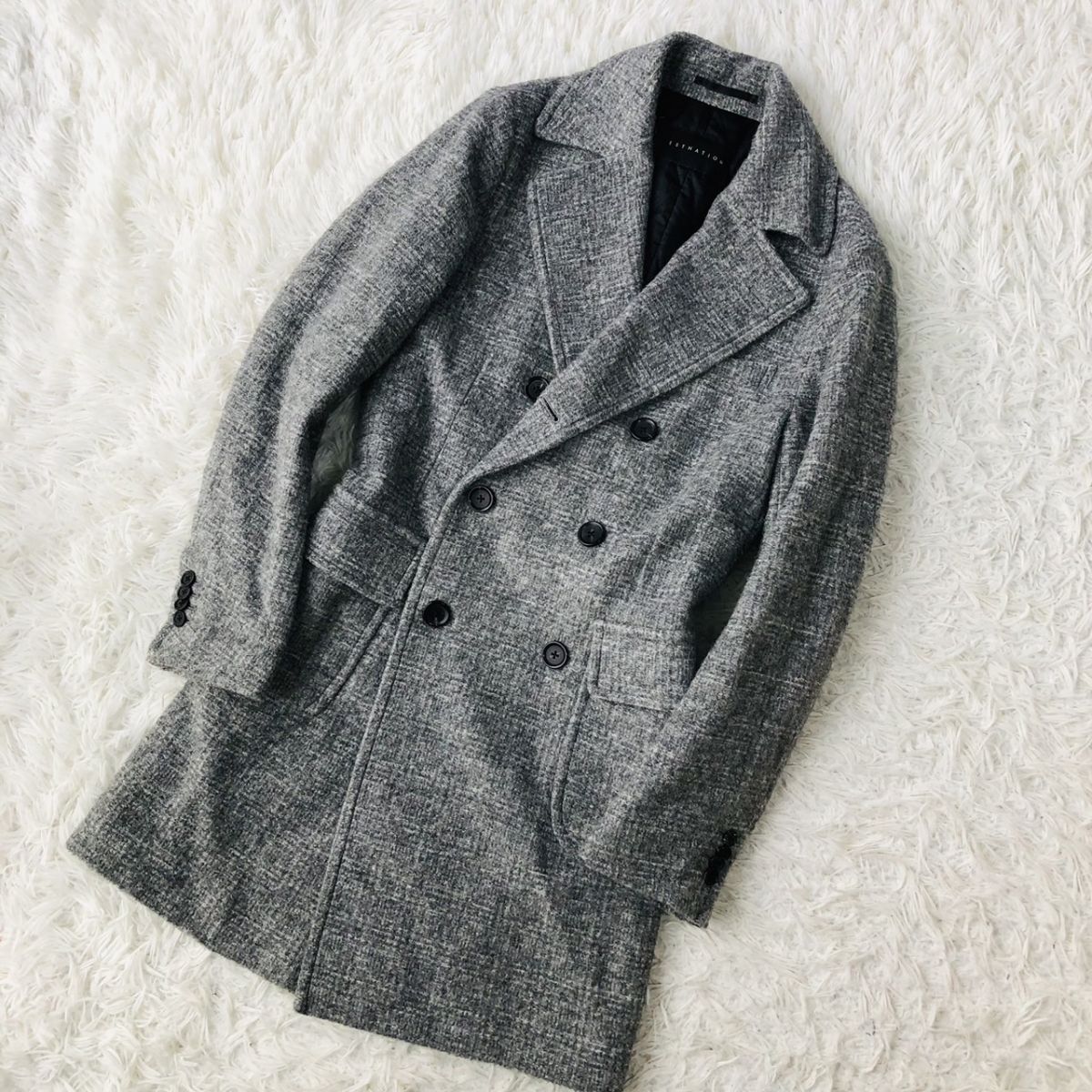 【美品/高級素材】ESTNATION エストネーション チェスターコート ダブルブレスト チェック柄 モヘヤ混 グレー Sサイズ キルティング 03