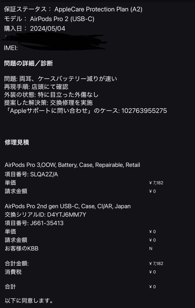 しかしAppleCareがあれば無料とのことです。
