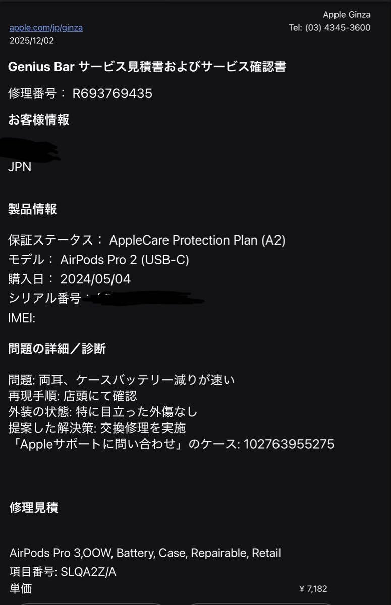 Applecareにて12/2に交換してから