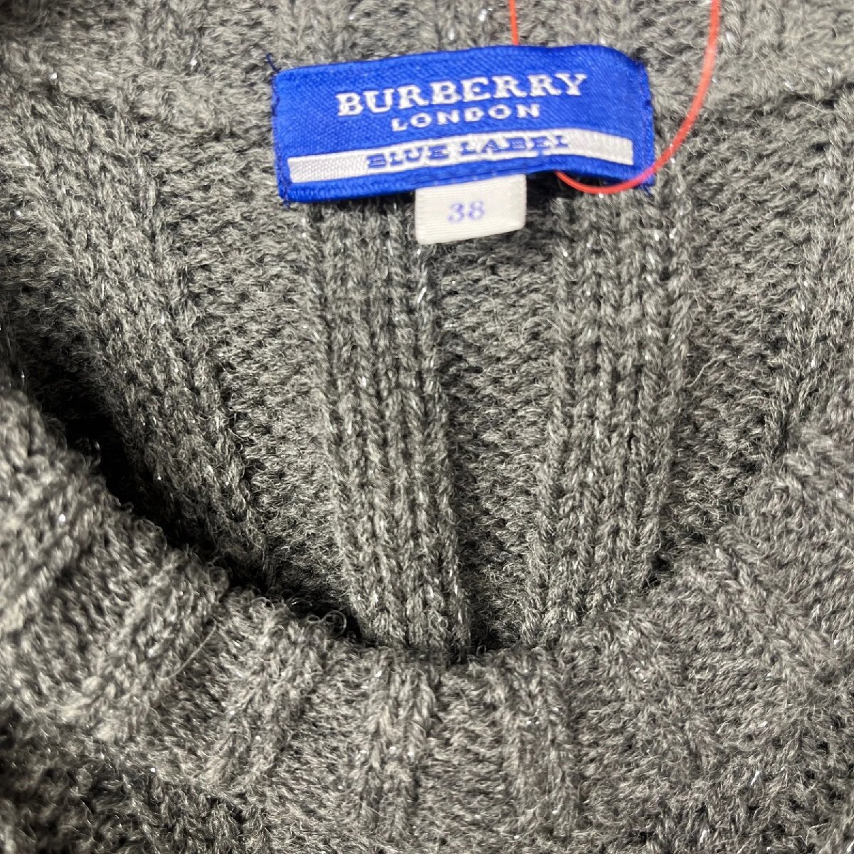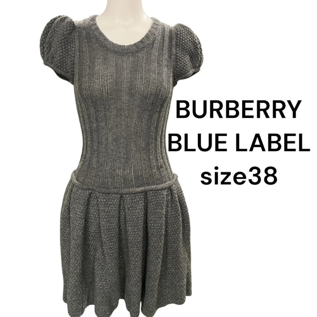 美品 バーバリー BURBERRY ブルーレーベル BLUE LABEL パフスリーブ系 ニット ワンピース グレー 38、M、9号 S5M229