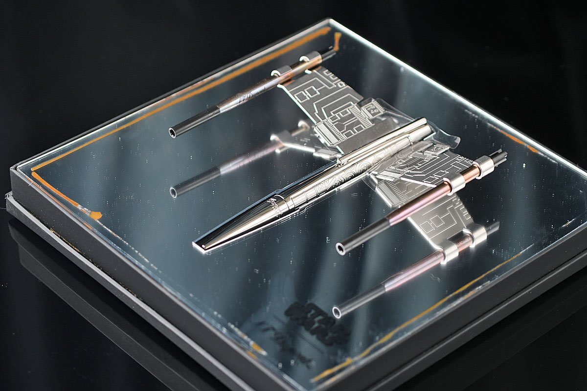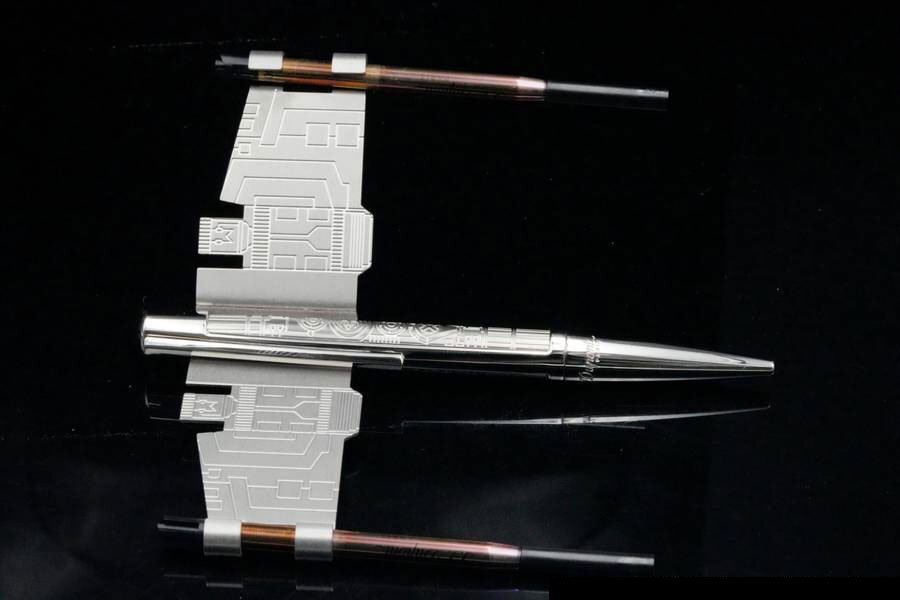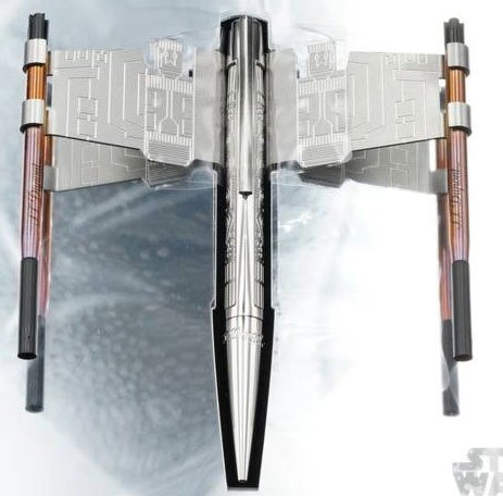 映画スターウォーズに登場する反乱同盟軍及び新共和国軍の戦闘機Xウィング・スターファイターをモチーフにしたデザインで、中央部がボールペンで左右両翼の先端に替えインクが装着され、一見するとまさにXウィング・スターファイターのオブジェに見える非常に凝った作り込み。
