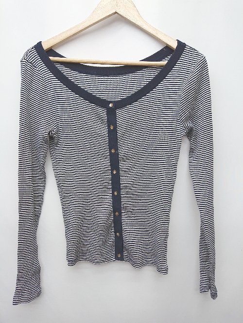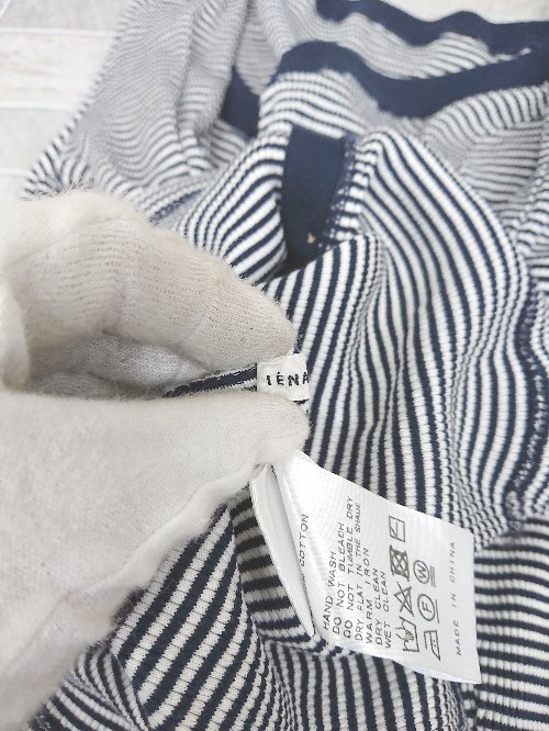 ◇ ⊇ IENA イエナ ボーダー リブニット 長袖 カーディガン ブラック ホワイト ネイビー レディース P