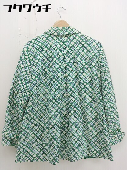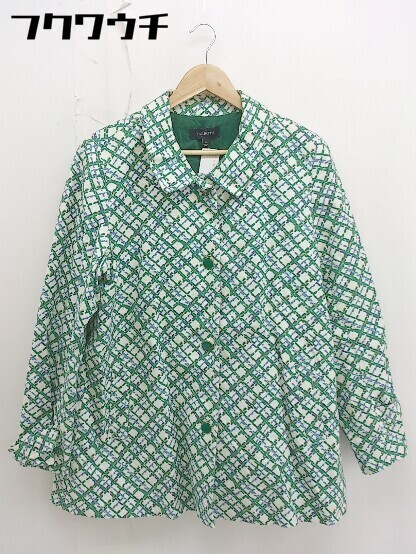 ■ TALBOTS タルボット 総柄 長袖 ステンカラーコート サイズ16 アイボリー グリーン レディース