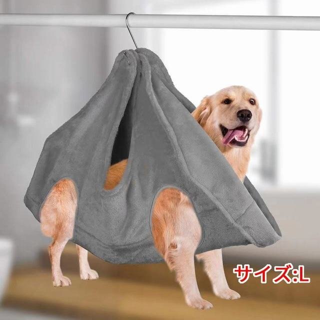 このハンモックをすると、ワンちゃんから足元は見えないので、爪切りやバリカンが怖くない様です。