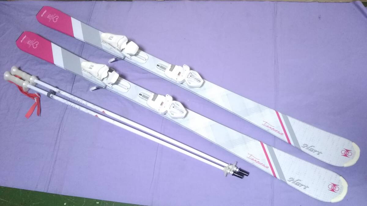 ★Hart ハート Innocence イノセンス スキー板 150cm ビンディング Tyrolia チロリア SLR9.0 ストック付き 白×ピンク 現状渡し