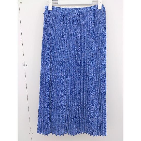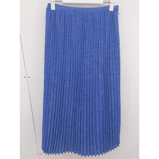 ◇ Unaca アナカ ピンドット バックウエストゴム ロング プリーツ スカート サイズ 38 ブルー ホワイト レディース
