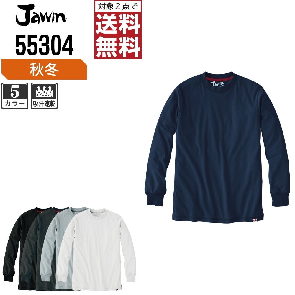 Jawin ジャウィン 通年 吸汗速乾 長袖 Tシャツ 快適な着心地 55304 色:チャコールグレー サイズ:S ★ 対象2点 送料無料 ★