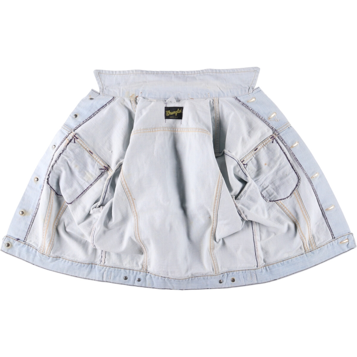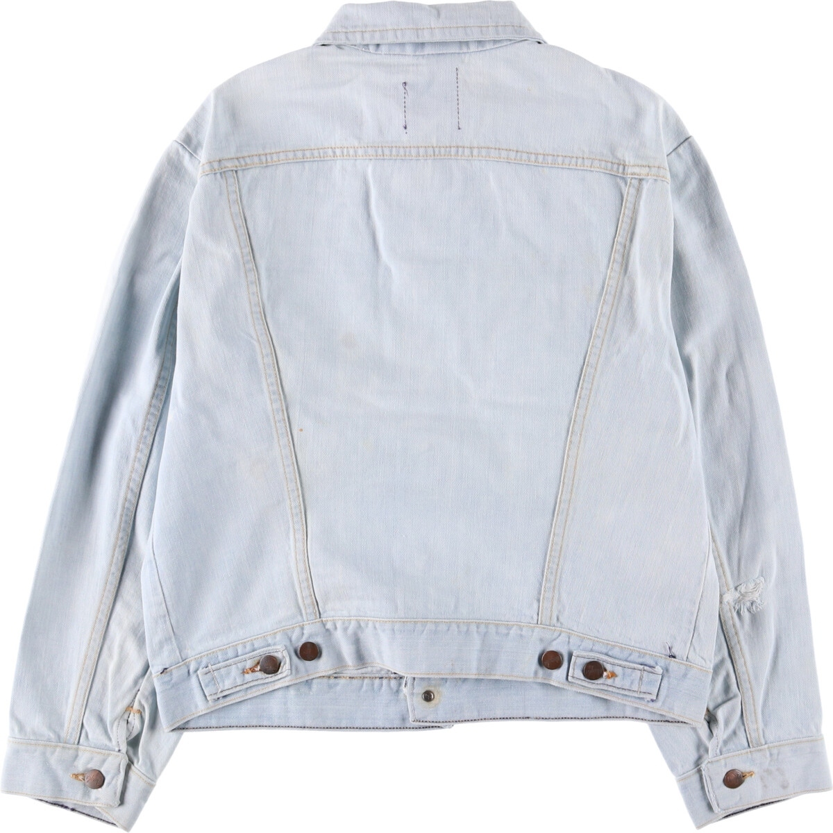 | 着用感: メンズM 表記サイズ: 42 着丈: 54cm 身幅: 53.5cm 肩幅: 46.5cm 袖丈: 57cm ![]() | ![]() ランク:C USEDデニムですので使用感、擦れ、色落ちなどございますが、まだまだご愛用していただけます。 古着という事をご理解の上ご注文よろしくお願いします。 【状態追記】 ●全体に内汚れ・汚れ ●前、右ポケット(内側)にボタンダメージ ●前、左ポケット(内側)に焦げ ●前、左袖先(内側)に糸ぬけ ●後、左袖先(内側)に汚れ ●前、右腹部(内側)・裾(内側)に焦げ ●前、右腕(内側)に裂け ●前、左腕(内側)にほつれ |