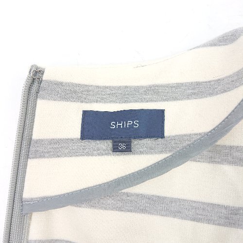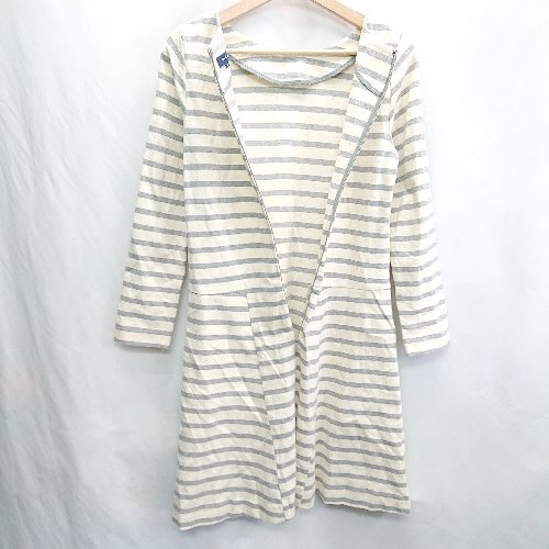 ◇ ⊇ SHIPS シップス ボーダー 長袖 ミニ丈 ワンピース サイズ36 アイボリー系 レディース E
