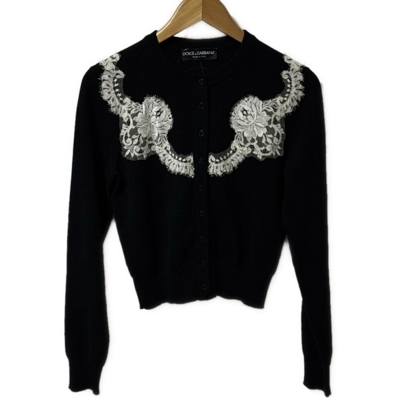 ドルチェアンドガッバーナ DOLCE&GABBANA カーディガン サイズ38 S - 黒×白 レディース 長袖/カシミヤ/レース 美品 トップス
