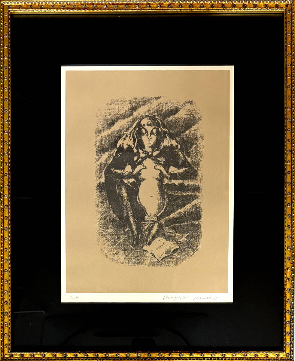 【真作・希少】金子國義 リトグラフ「ぬいぐるみの少女(Doll Girl)」 サイン入り/E.A.版<額装品>