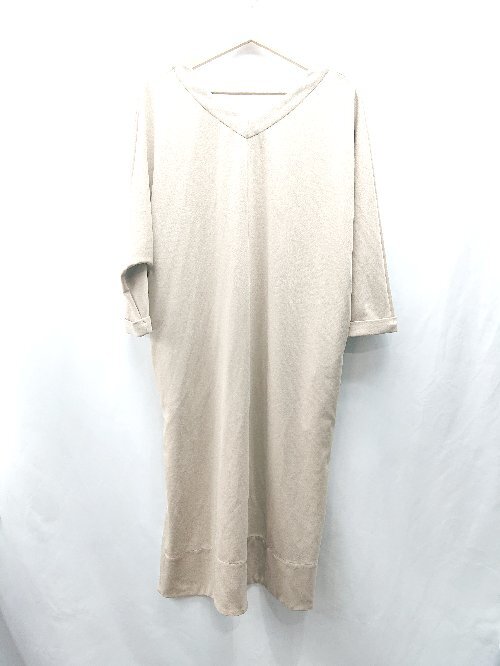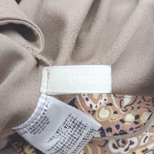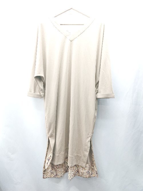 ◇ ⊇ FURRY RATE 総柄 スリット加工 Vネック 長袖 ロング丈 ワンピース サイズF ベージュ系 レディース E