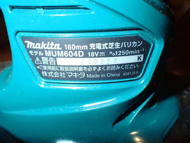 マキタ充電式芝生バリカン_18V_MUM604DZになります。