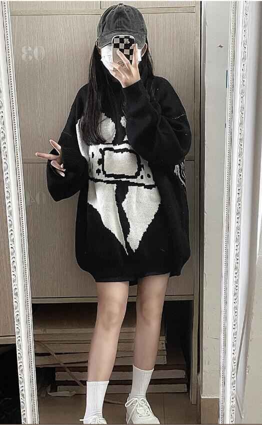 プルオーバーセーター 秋冬 ニットトップ レディース 長袖 カジュアル S ブラック