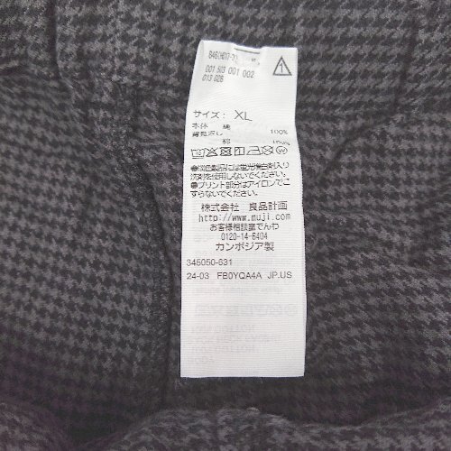 ◇ ⊂ 無印良品 ムジルシリョウヒン ウエストゴム 千鳥柄 テーパードパンツ サイズXL ダークグレー レディース E
