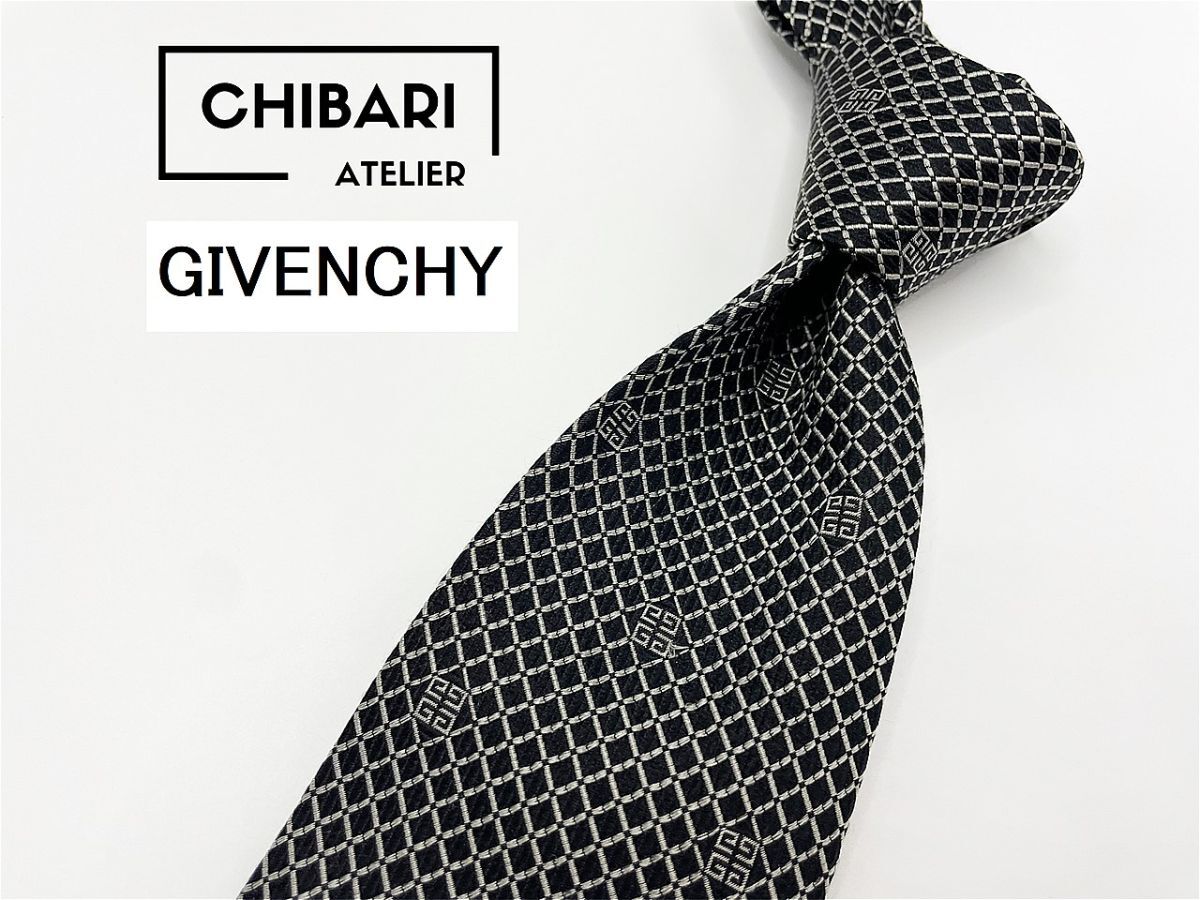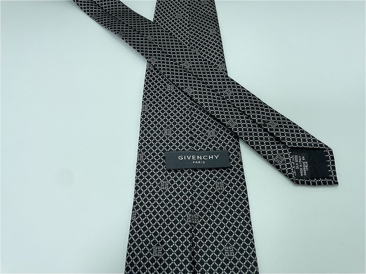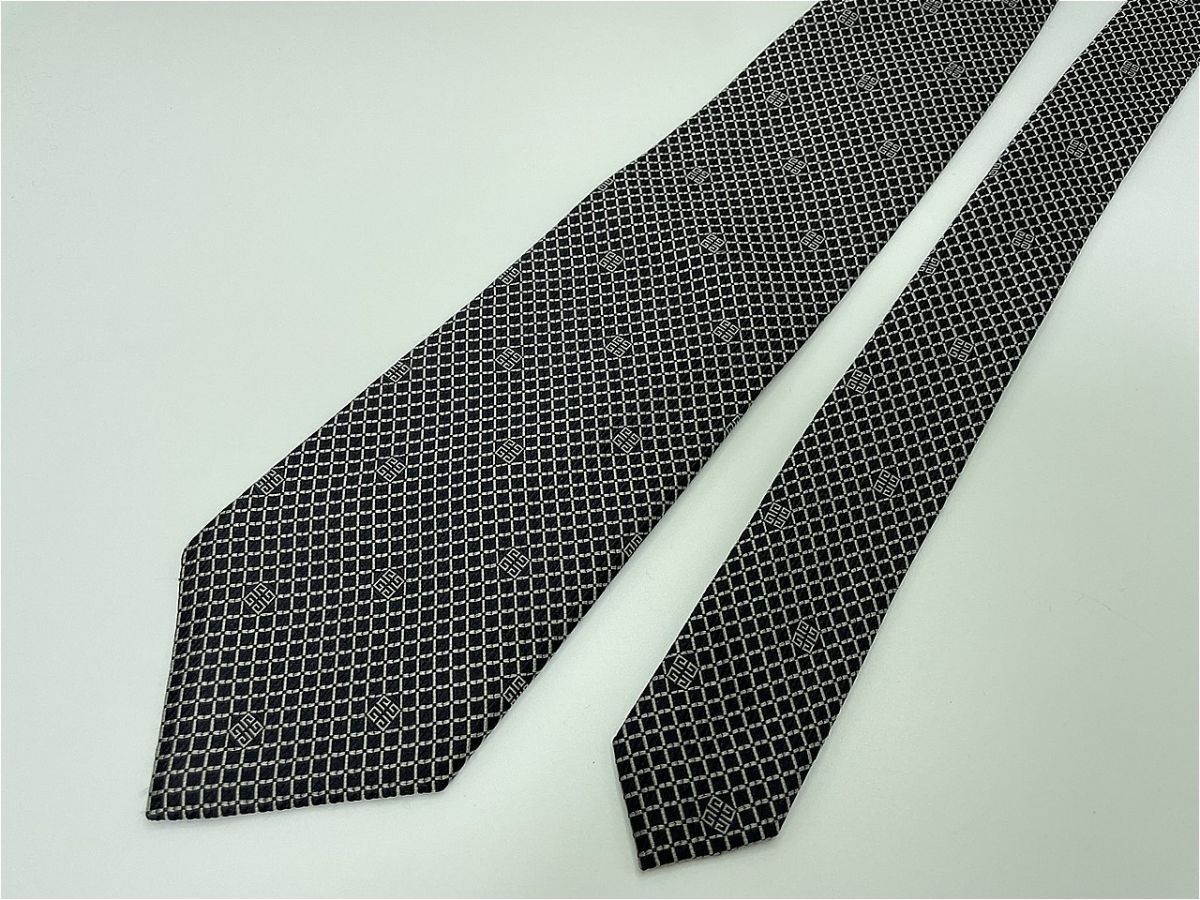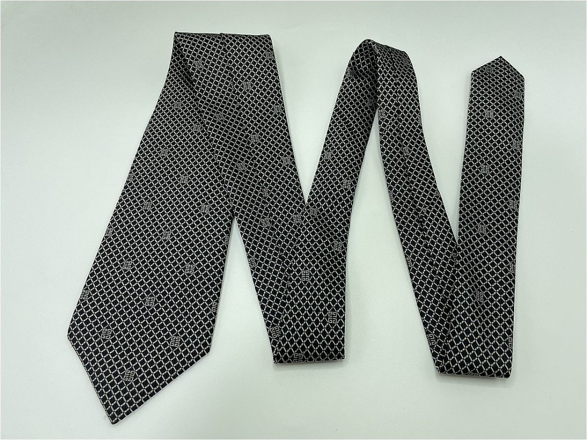 【超美品】GIVENCHY ジバンシー 全面ロゴ&チェック柄 ネクタイ 3本以上 送料無料 メンズ ブラックグレイ 1101160