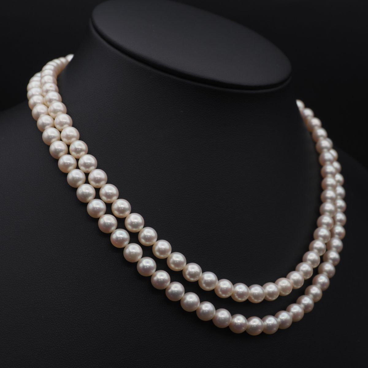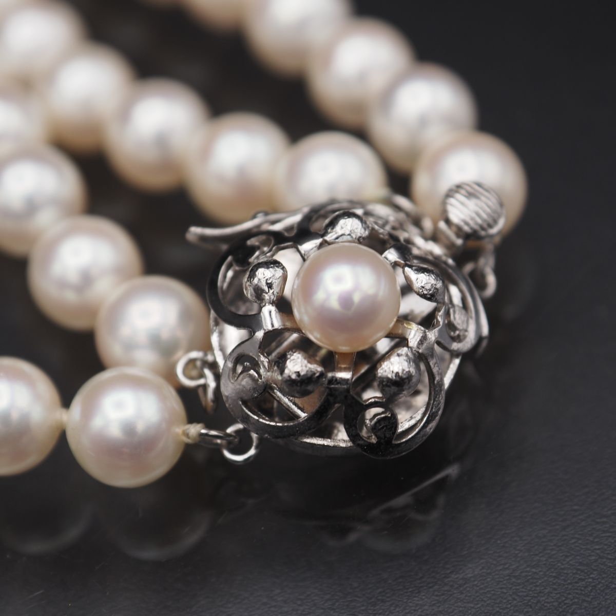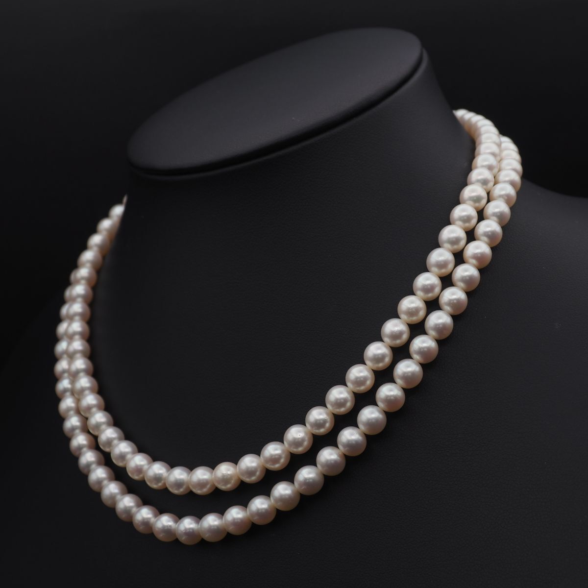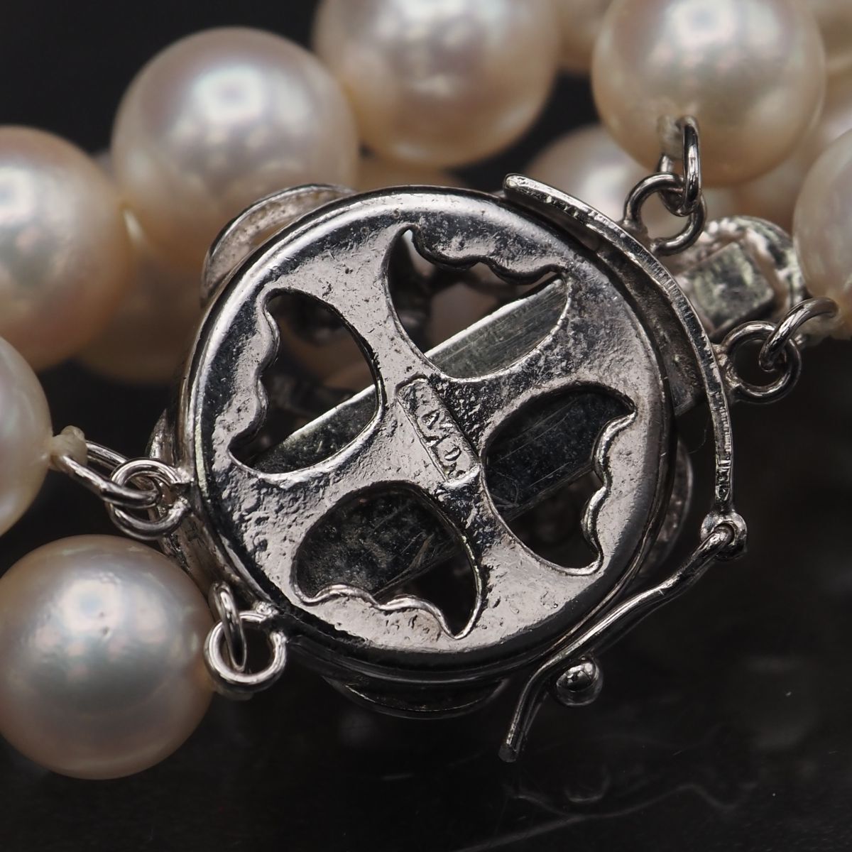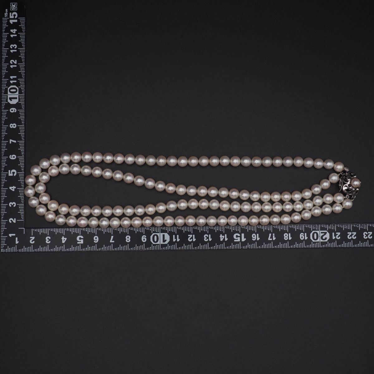 J814 本真珠 6.7mm珠 パール SILVER刻印 ネックレス 2連 デザイン シルバー 6月誕生石