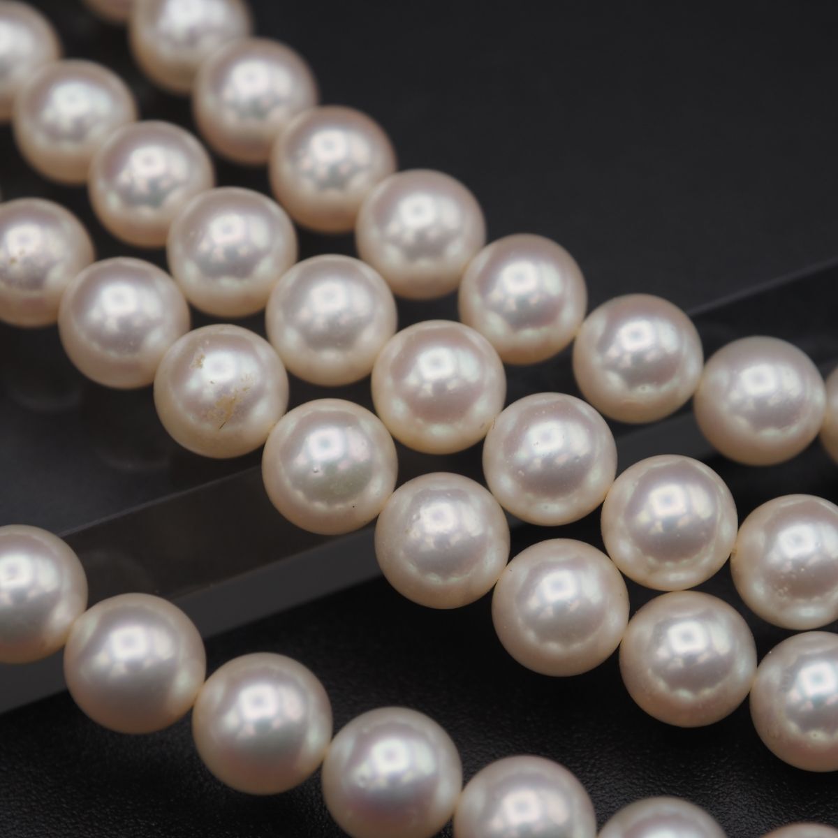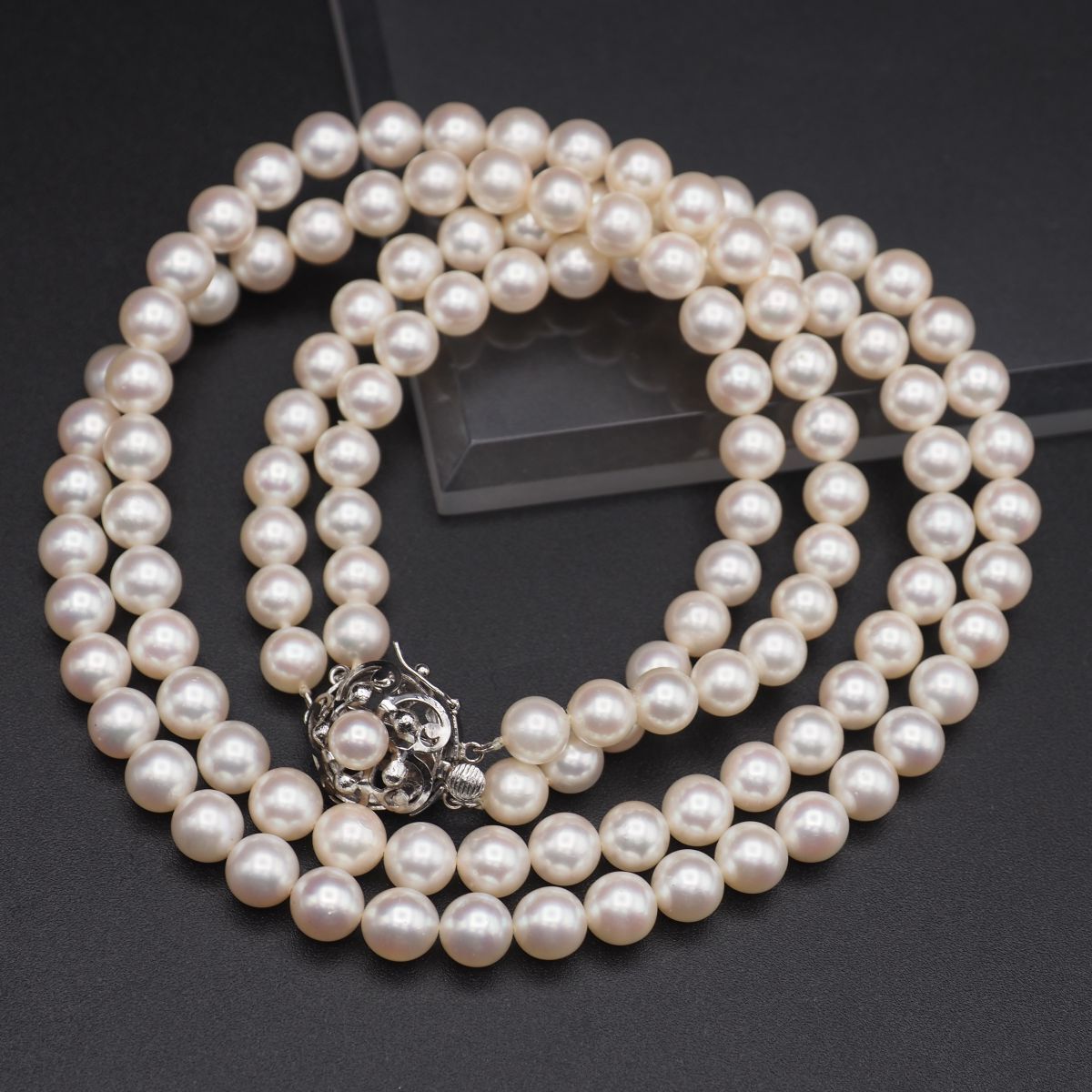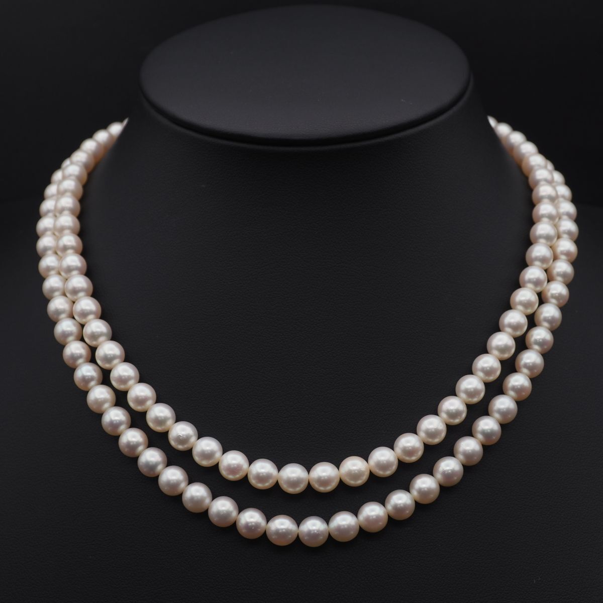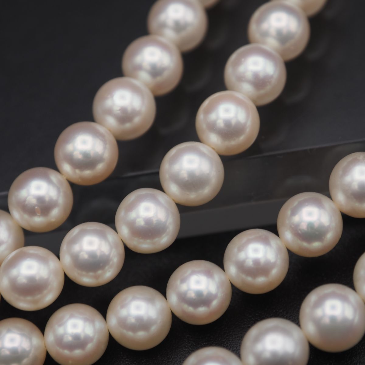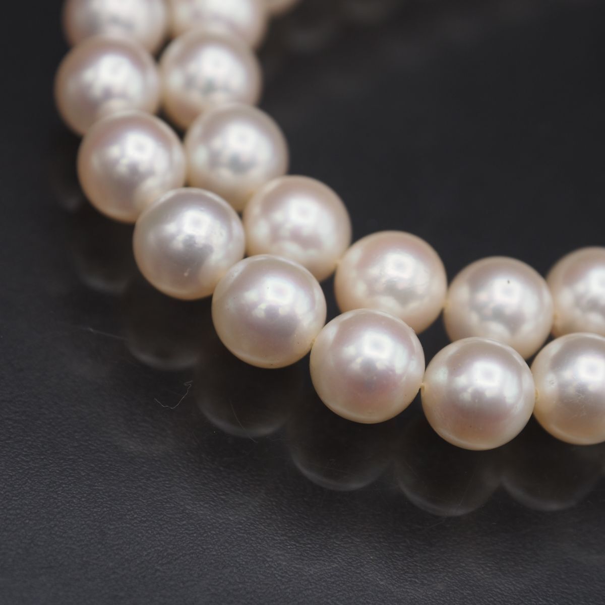J814 本真珠 6.7mm珠 パール SILVER刻印 ネックレス 2連 デザイン シルバー 6月誕生石