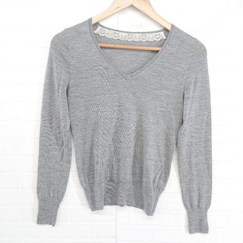 ◇ green label relaxing UNITED ARROWS ウール100% Vネック 長袖 ニット セーター サイズ38 グレー系 レディース P